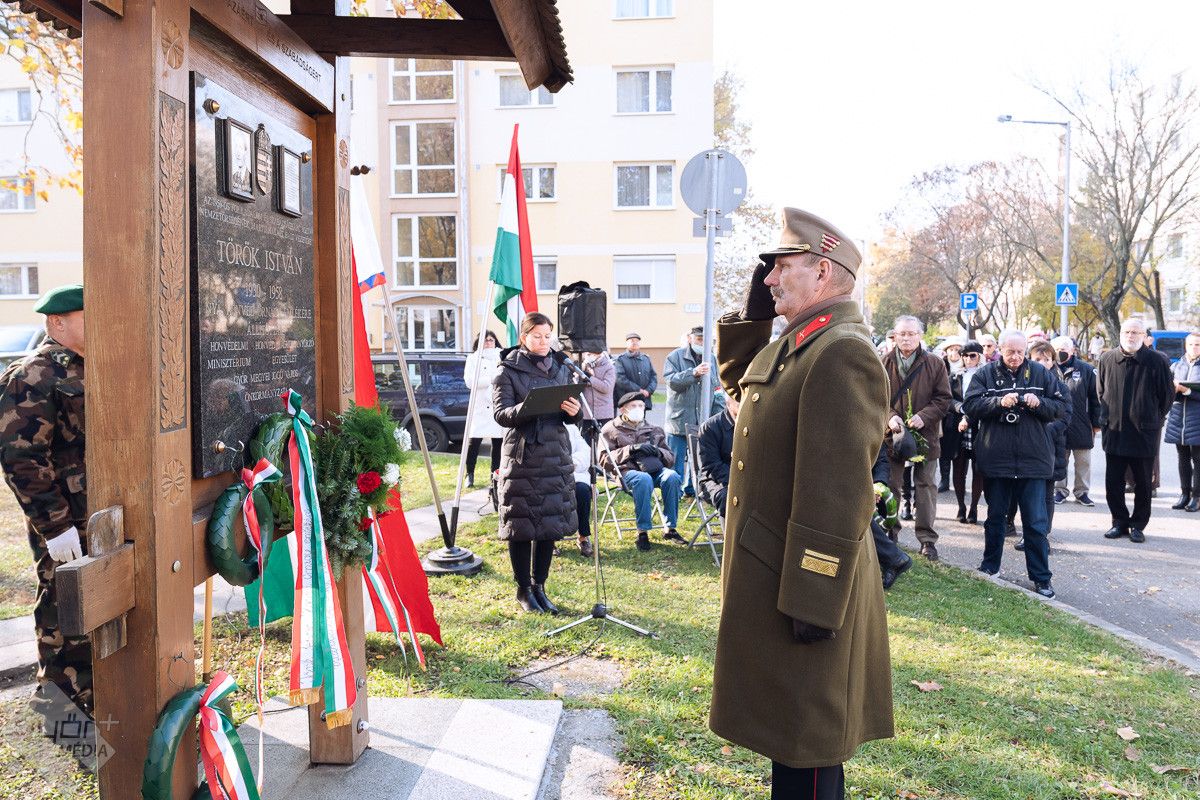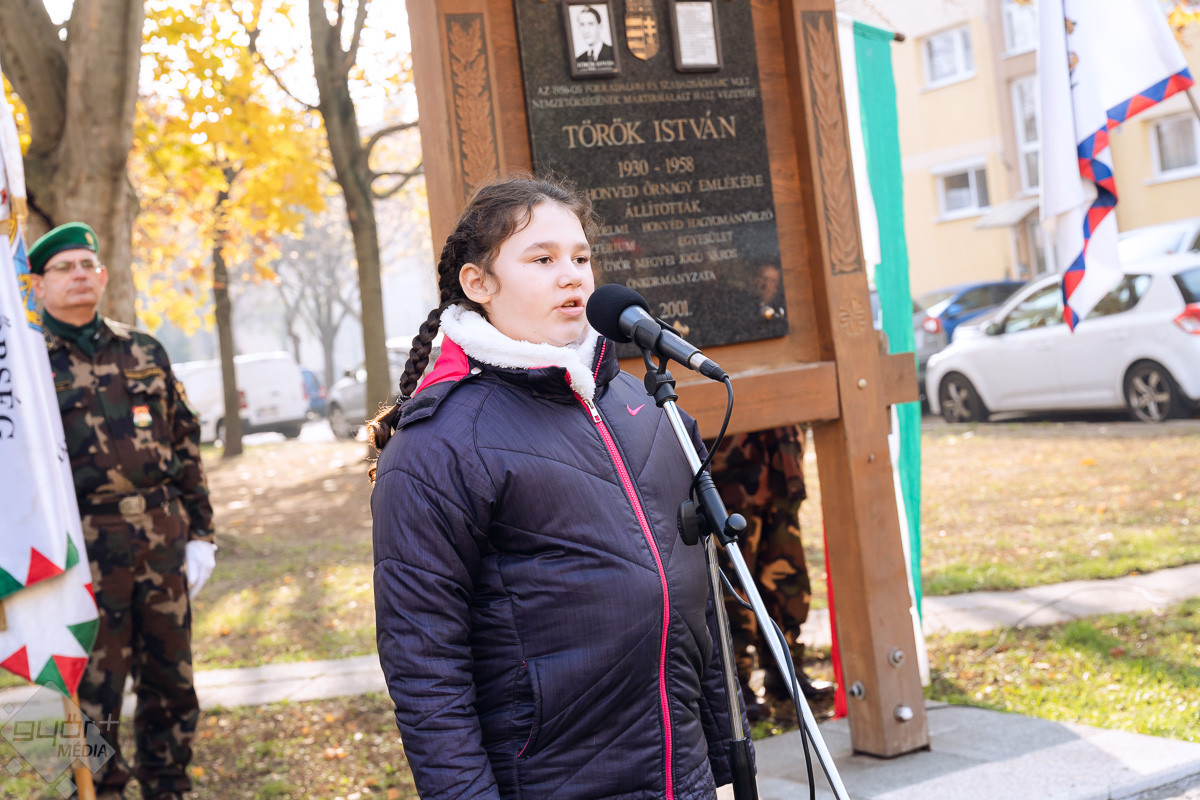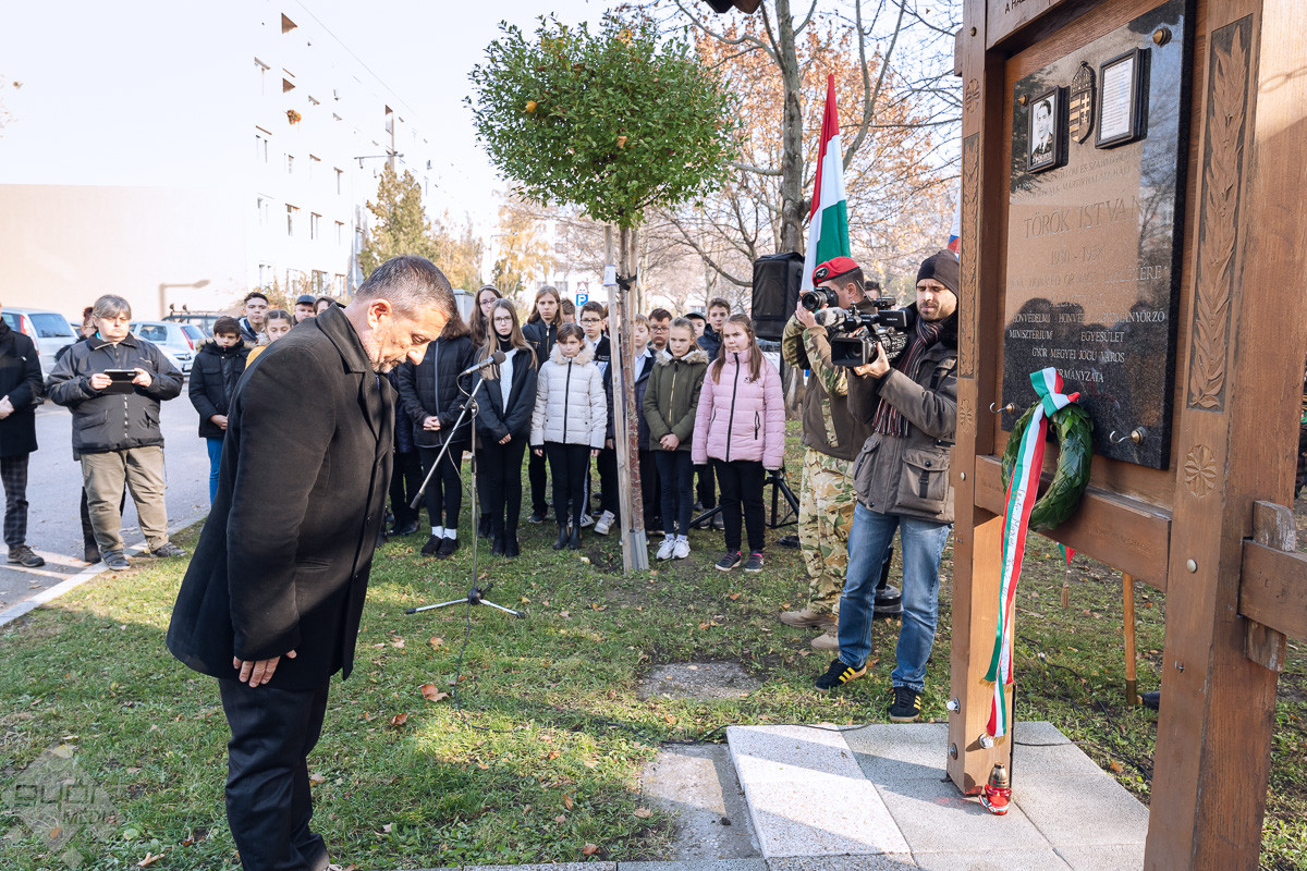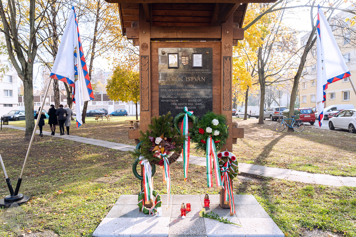 „A világon páratlan szabadságharc volt ez, a fiatal nemzedékkel a népünk élén. Azért folyt, mert a nemzet szabadon akart dönteni arról, hogy miképpen éljen.” Mindszenthy József bíboros szavaival kezdte ünnepi beszédét dr. Szálasy László önkormányzati képviselő, majd életrajzi részletekkel idézte fel Török István alakját. Segítőkész, másokért tenni sosem rest fiatal volt. Katonai pályára készült, de vallásos neveltetése és az elnyomás elleni lázadása miatt a tüzértiszti iskolában az alhadnagyi rangfokozat megszerzése után leszerelték. 1956 tavaszán költözött Győrbe, a vagongyárban dolgozott vasesztergályosként. Közös albérletben lakott Büki Lajossal, akivel barátságot kötöttek, s később együtt vettek részt a forradalomban is.
