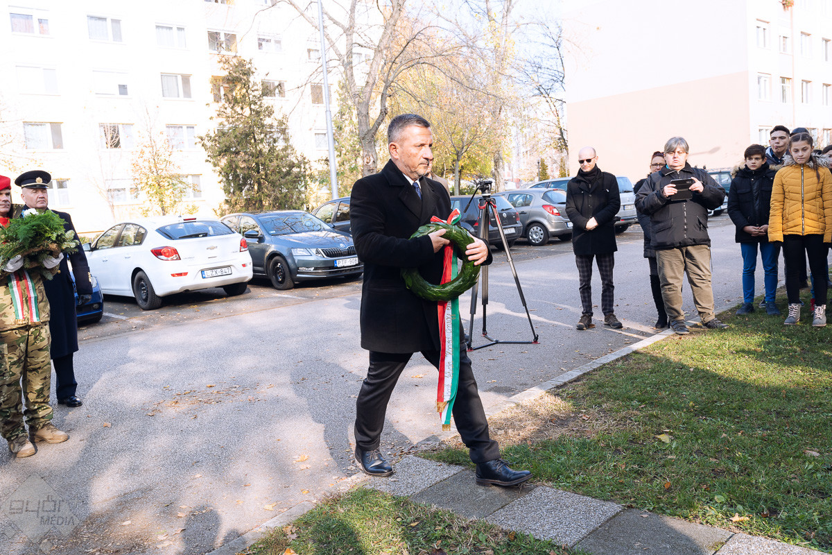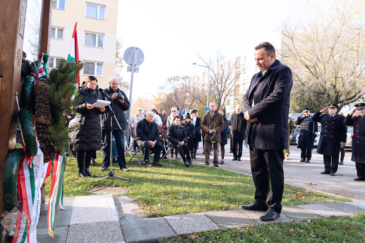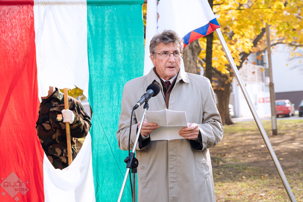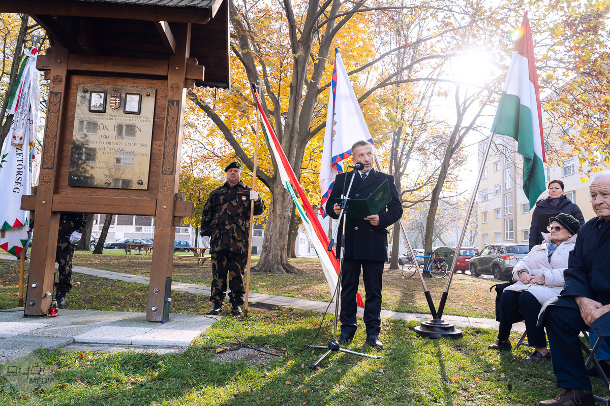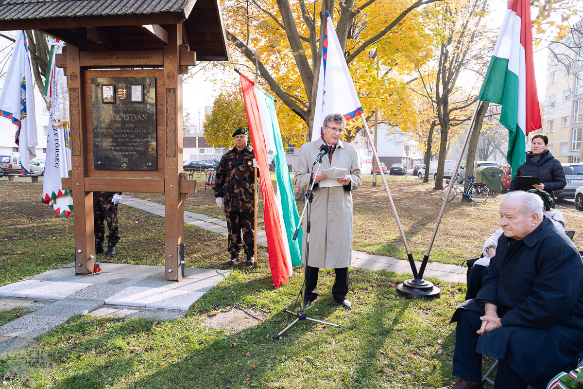 „A világon páratlan szabadságharc volt ez, a fiatal nemzedékkel a népünk élén. Azért folyt, mert a nemzet szabadon akart dönteni arról, hogy miképpen éljen.” Mindszenthy József bíboros szavaival kezdte ünnepi beszédét dr. Szálasy László önkormányzati képviselő, majd életrajzi részletekkel idézte fel Török István alakját. Segítőkész, másokért tenni sosem rest fiatal volt. Katonai pályára készült, de vallásos neveltetése és az elnyomás elleni lázadása miatt a tüzértiszti iskolában az alhadnagyi rangfokozat megszerzése után leszerelték. 1956 tavaszán költözött Győrbe, a vagongyárban dolgozott vasesztergályosként. Közös albérletben lakott Büki Lajossal, akivel barátságot kötöttek, s később együtt vettek részt a forradalomban is.