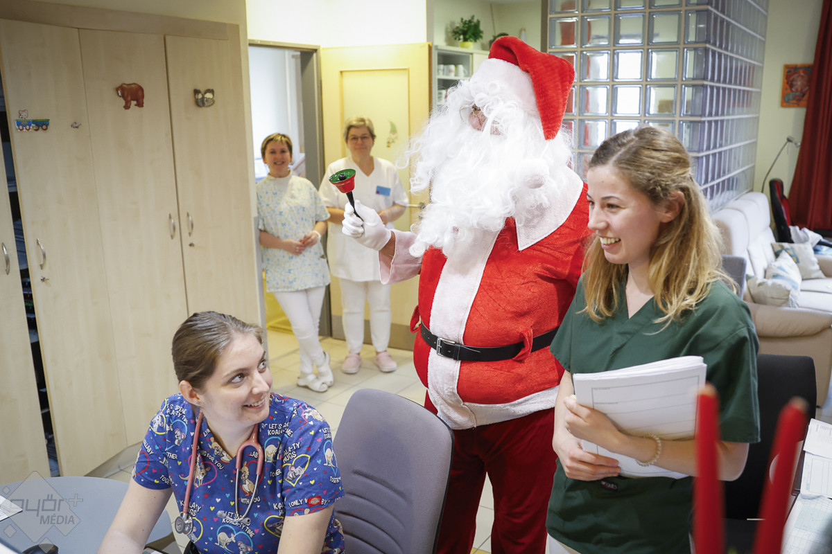 Jókedvűen, nagy tervekkel érkezett a győri Petz Aladár kórházba a Győr+ Mikulása. Nem üres kézzel érkezett, hiszen a drága olvasóinknak, nézőinknek, hallgatóinknak hála rengeteg csomag gyűlt össze, amit személyesen hozott el a gyerkőcöknek. Egyesek már a folyosón kukucskálva várták a nagyszakállút, és még énekeltek is egy csomagért cserébe. A Mikulás pedig minden kórterembe bement, az ajándékozásból a legkisebbek sem maradhattak ki. A Télapó járt a gyerekosztályon, a fertőző részlegen és a gyermek fül-orr gégészeten is, de az ápolók, doktorok sem maradtak ki, ők is kaptak szaloncukrot és néhány kedves szót.