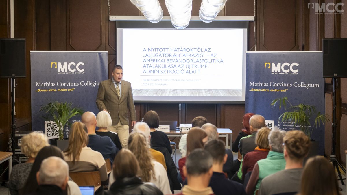 “Nem elég a határokat őrizni – értenünk is kell, miért lépik át őket!”- hangzott el dr. Balogh Máté Gergelynek, az MCC Migrációkutató Intézetének senior kutatójának előadásán a Mathias Corvinus Collegium (MCC) győri képzési központjában, amelyet “A nyitott határoktól az Alligator Alcatraz-ig: az amerikai bevándorláspolitika átalakulása az új Trump-adminisztráció alatt” címmel rendeztek meg november 3-án.