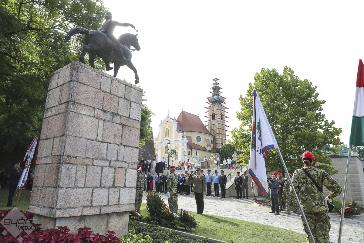 „2021-ben vár ostromát megállító áldozatot nem vár el tőlünk hazánk, de Szent István király példája ma is kötelez bennünket, meg kell védenünk örökségünket.” Rózsavölgyi László beszéde után az ünneplők elhelyezték koszorúikat Szent István lovasszobránál.