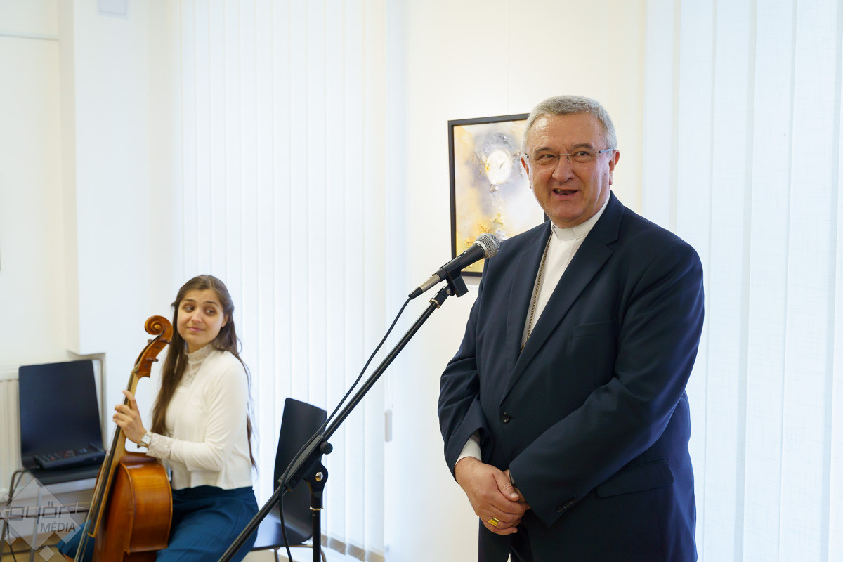 A tárlat látogatóit dr. Veres András megyés püspök köszöntötte, aki elmondta, minden, a Triangulum Galériában rendezett tárlat, esemény ünnep a léleknek, és nemcsak a művésznek, hanem azoknak is, akik az alkotásokat megtekintik. „Ezeken a képeken a színnek, a fénynek, a szépnek olyan felvillanásait érzékelhetjük, amely remélhetőleg bennünk is fölébreszti a fényt, az Isten felé fordulást” – hangsúlyozta dr. Veres András.