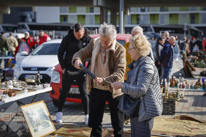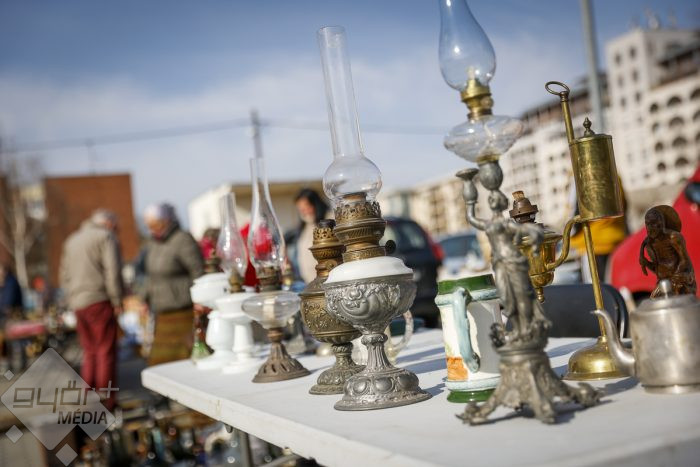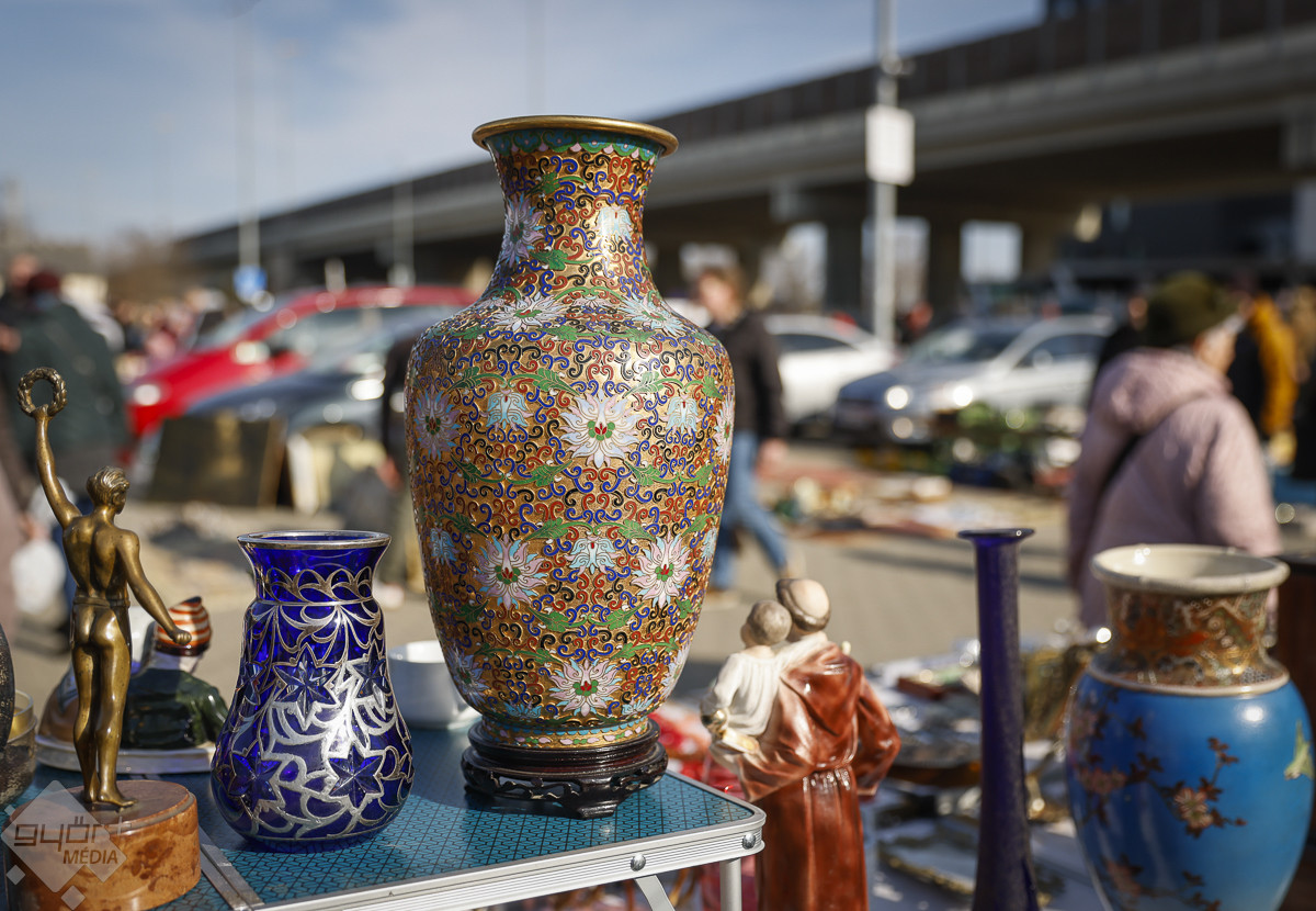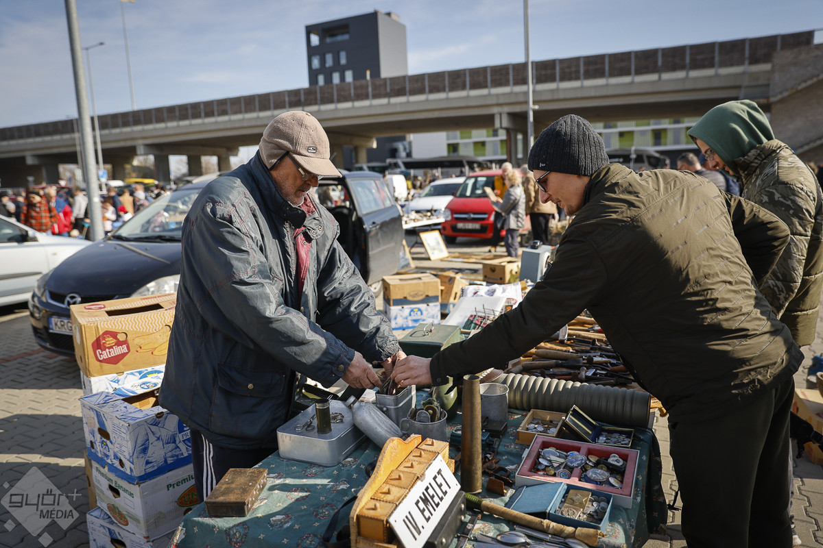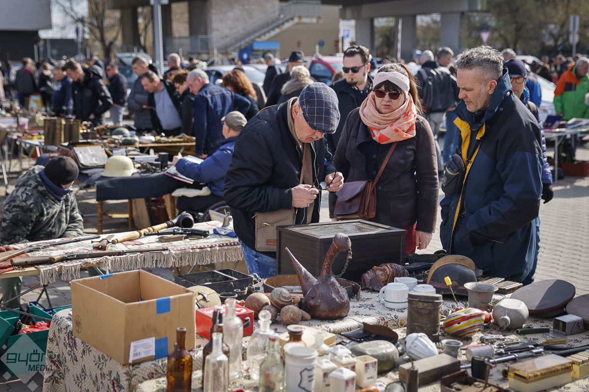 Körülnézek a piacon. Kitört a tavasz, legalább hatvan-hetven árus pakolt ki. Szinte minden kapható itt, a régi iskolai tintásüvegtől, a szocializmus fontos embereinek járó piros telefonig, a benzineskannától a töltényhüvelyig. Érmek, könyvek, bakelitlemezek, színes plakátok százai kelletik magukat. A férfiak a háborús relikviákat, kardokat keresik, nagyon népszerű Nagy-Magyarország falra akasztható iskolai térképe, de van ékszer, festmény, régi ruha, rézmozsár, szőnyeg és utazóbőrönd, vérvörösre festett, ember nagyságú Lenin mellszobor, tulajdonosa szerint Marton László szobrászművész alkotása. Aztán osztrák és francia ezüst cukortartók, egykori ágyúlövedékek, diafilmek szódásüvegek, szerszámok, autómodellek, katonasapkák, hajdani utcanévtáblák.