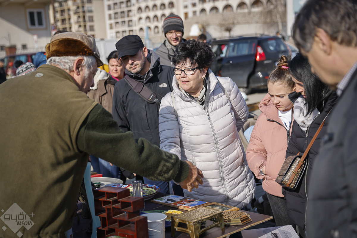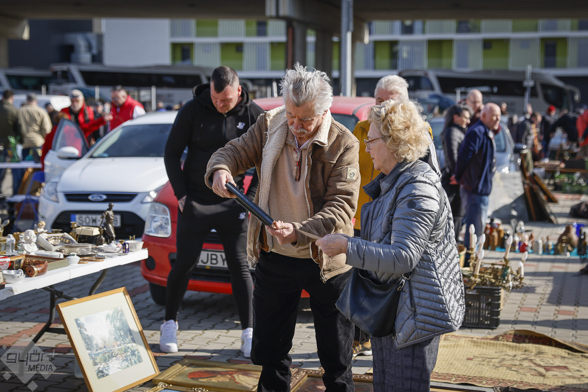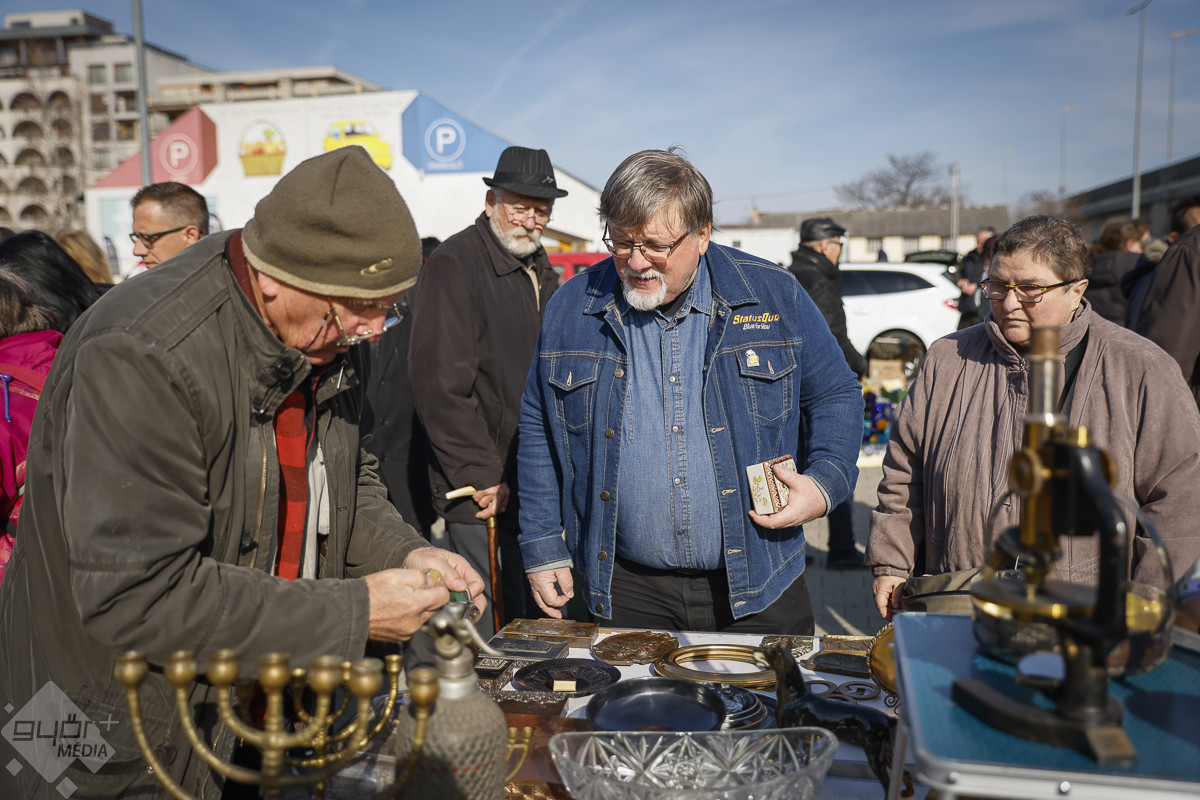 Gergely István győri antikváriusnál végre egy erdélyi húsklopfolót is talál a polgármester. Meglát ott egy 1848-as kilőtt ágyúgolyót, azt is megveszi. Ettől kezdve nyugodtabban nézelődik, sokan megállítják, köszöntik, a sokszáz látogató jelentős része egyébként – ha csak látásból is – ismeri egymást. Megmutatják ismerőseiknek napi szerzeményüket.