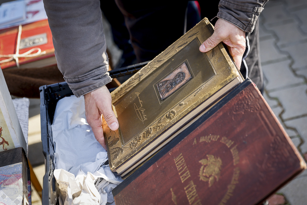 A könyv és Kovács Margit is győri kötődésű. Mindig örülök, ha ilyen értékeket találok – szorítja magához a szerzeményeit. A feleségem sem fog megszidni érte, hiszen viszem a húsklopfolót is.
