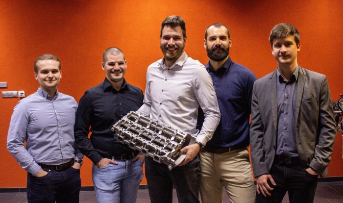 Nyitókép: Az Advanced Drivetrain Technology (ADT) négytagú csapata a Széchenyi István Egyetemen, a SZEngine Formula Student Team hallgatói csapatban kezdett el komolyabban foglalkozni versenymotor-fejlesztéssel, és annak műszaki és gazdasági oldalával. A képen hátul, balról jobbra: Györkös Szabolcs, Gyuris Attila, Szűr Levente; elől balról: Kovács Kristóf, Holik László.