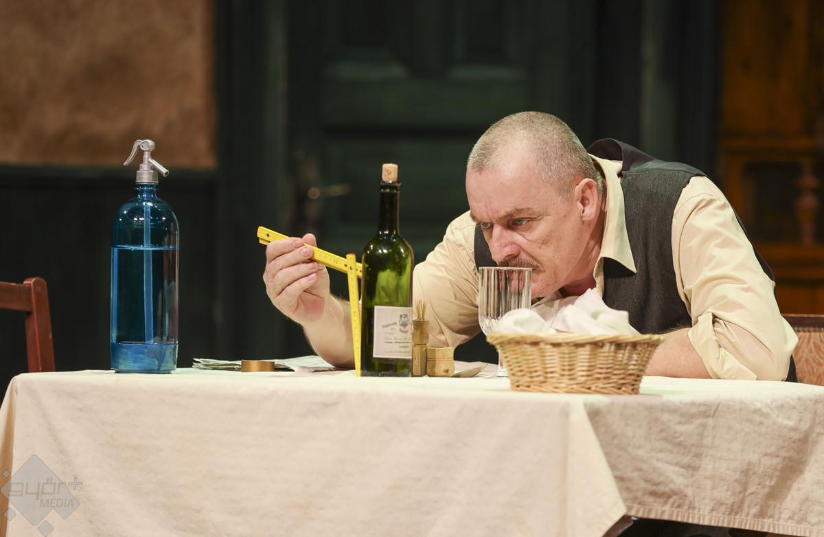 A korábbi előadásban az őrmestert játszottam, ami nagyon jó volt. Nagyon érdekes volt így 18 év után újra olvasni, újra csinálni, igyekeztem kiverni a fejemből az akkori darabot, de tértek vissza hangok, hallottam az akkori magamat a fejemben” – árulja el Sipos úr, azaz Ungvári István, majd gyorsan hozzáteszi Molnár Ferenc zsenialitása kapcsán, „a pasi mindent tudott a színházról, a kapcsolatokról és a hatásokról. És igenis hatásokat kell a színházban produkálni, hiszen a néző azért jön!”