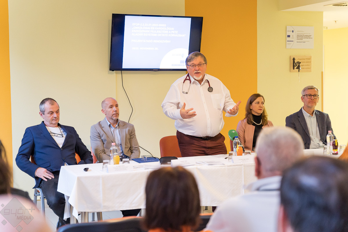 A projektzáró ünnepségen dr. Dézsi Csaba András polgármester úgy fogalmazott: „Az onkológia és a kardiológia látja el a népbetegségek nagyon komoly részét, ezért állandóan fejleszteni kell az itt dolgozók szakmai tudását, és a munkához szükséges eszközparkot. Ezért a mai nap mindkét szakma életében jelentős lépés.” Megköszönte a pályázatban résztvevők, valamint a mindennapi gyógyításban helytállók munkáját. „Ha fejlődik a kórház, akkor fejlődik a város, és ha Győr fejlődik, akkor tudunk abban segíteni, hogy a kórház is fejlődjön” – hangsúlyozta a városvezető.