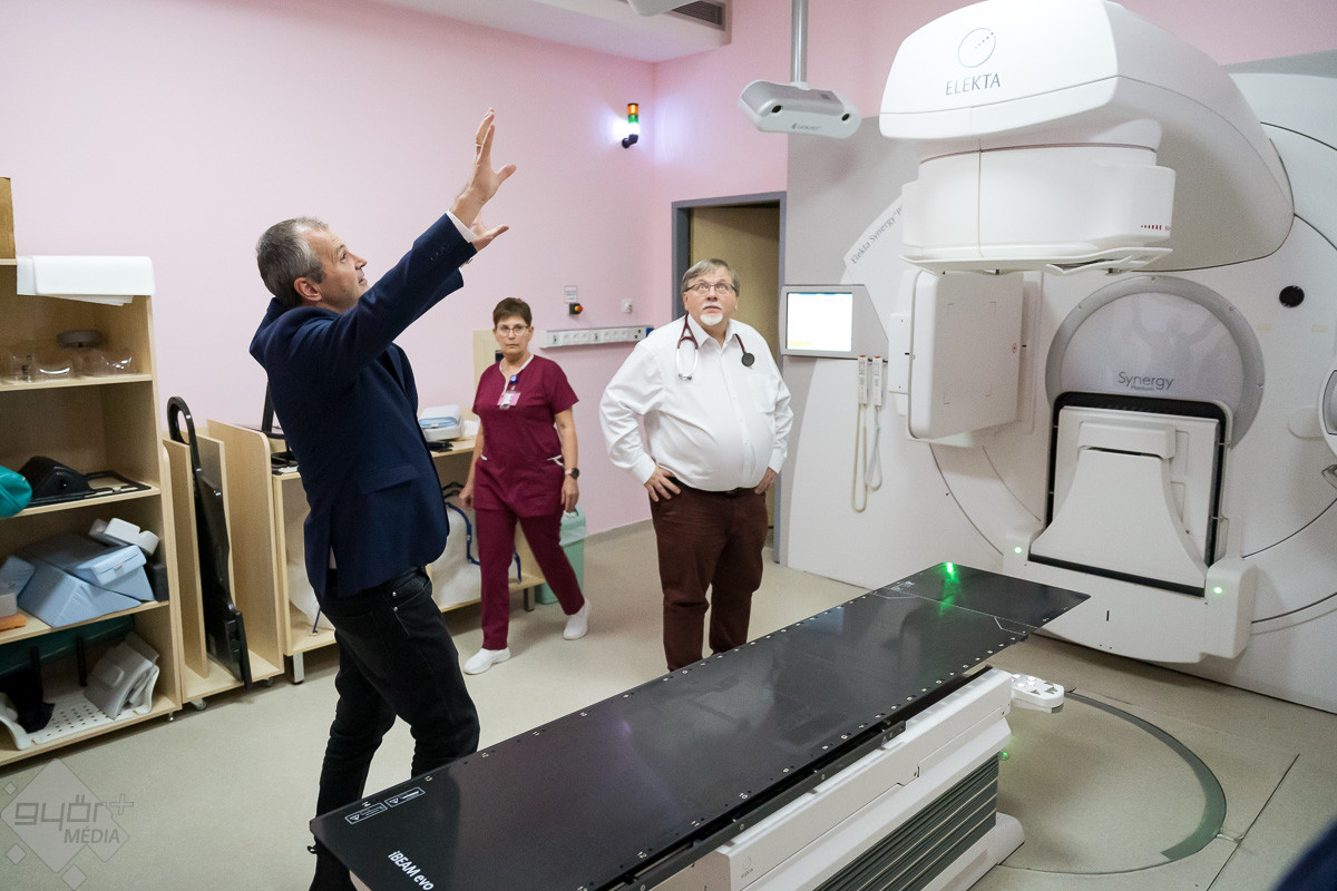 „Olyan szintre emeltük a CT-t és a sugárterápiás készüléket, hogy a legmodernebb, legprecízebb sugársebészeti ellátásokat is meg tudjuk valósítani. Ma már a világban nem a hosszútávú ellátásokat alkalmazzák, hanem a rövid, de nagyon precíz sugárterápiát. Mi erre eddig nem voltunk képesek, de ezzel a felszereltséggel bármit meg tudunk csinálni, ami a betegek érdeket szolgálja. A gépek közül kiemelkedik az ún. felület-szkenner, mellyel a beteg fektetését és a besugárzást még korrektebbé tehetjük, vagyis száz százalékos pontossággal tudunk vele dolgozni. Ez a felszereltség Magyarországon csak Győrben elérhető. A jelenlegi pályázat az onkoradiológiai osztályon a terápiát segíti, míg a kardiológián az ultrahang készülék a képalkotásban, vagyis a diagnózis felállításában támogatja az orvost.”