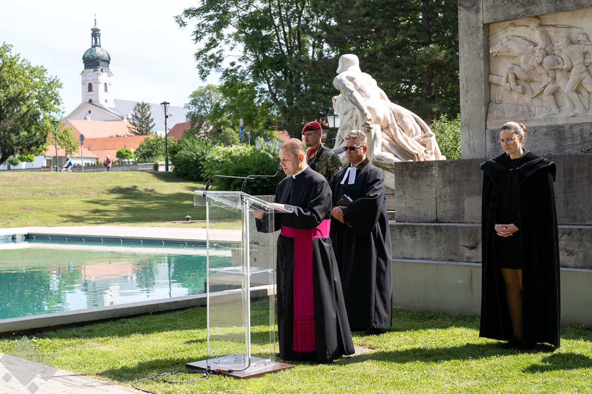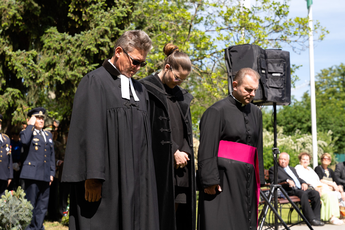 A történelmi egyházak nevében imát mondott az elesett hősök lelki nyugalmáért Böcskei Győző plébános, a római katolikus egyház, Jánosa Attila lelkész, a győri evangélikus egyházközség és Strifler Zoltánné lelkipásztor a győri református egyházközség képviseletében.
