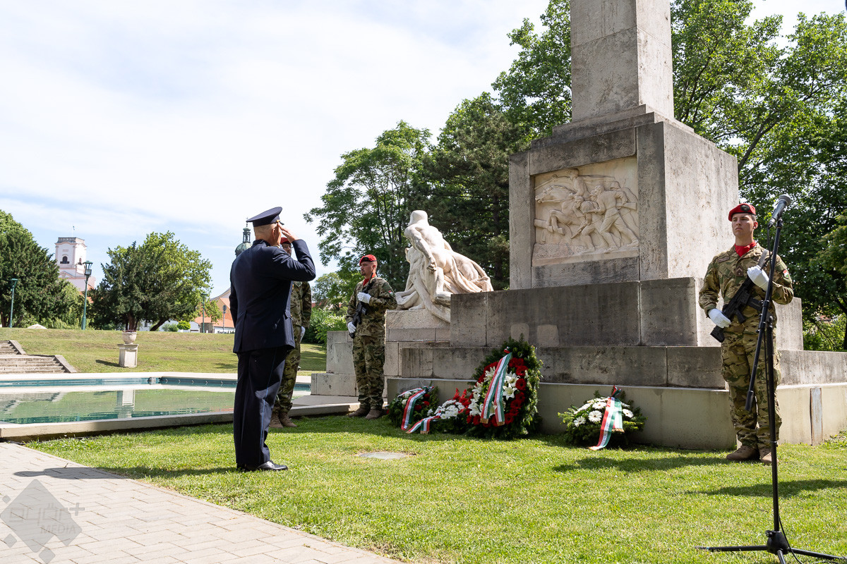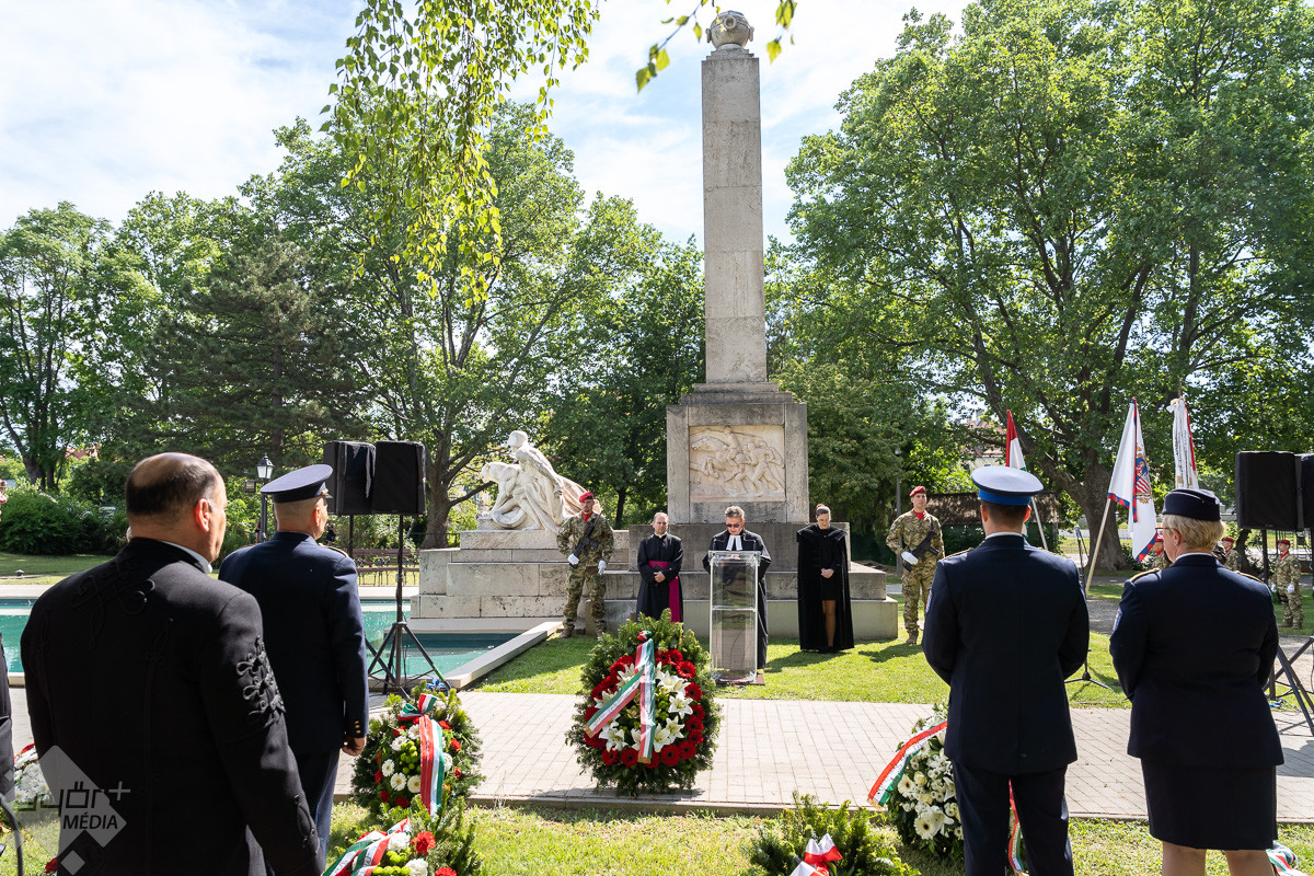 Az alpolgármester ünnepi beszédében méltatta a hazáért elesett hősöket, honvédeket és a névtelen áldozatokat. Beszélt a két nagy háborúban elesettek mellett, 1956 forradalmának hőseiről, mártírjairól, és azokról, akik Magyarország megalapításától mostanáig katonaként, vagy civilként adták életüket hazánkért.
