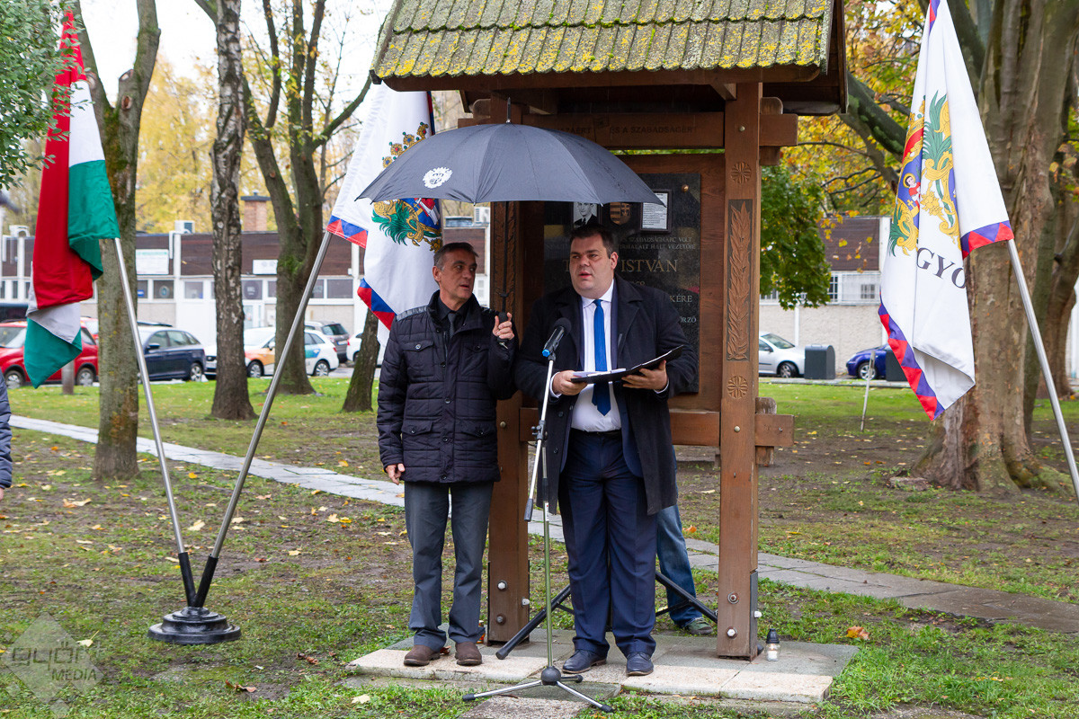 A városi önkormányzat nevében Borsi Róbert szólt a résztvevőkhöz. A képviselő Márait, majd Albert Camust idézte. „A legázolt és bilincsbe vert Magyarország többet tett a szabadságért, mint bármelyik másik nép az elmúlt húsz esztendőben. Ahhoz, hogy ezt a történelmi leckét megértse a fülét betömő, szemét betakaró nyugati társadalom, sok magyar vérnek kellett hullnia.”