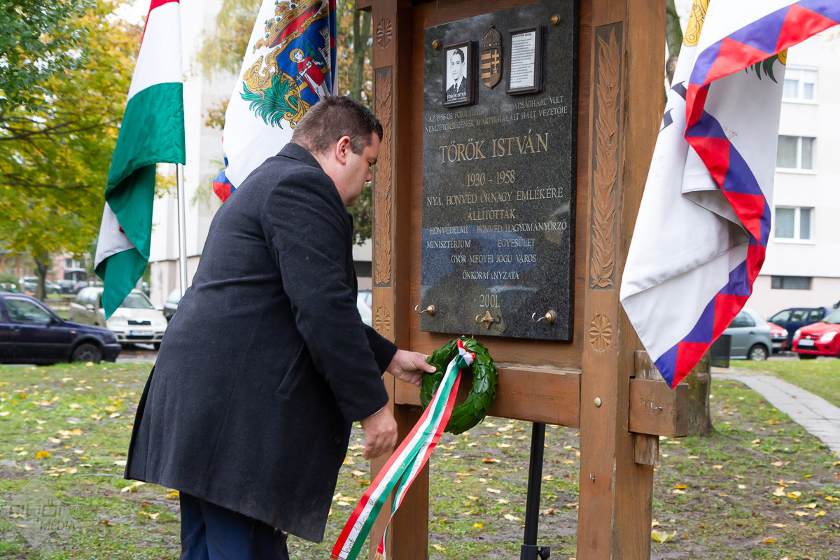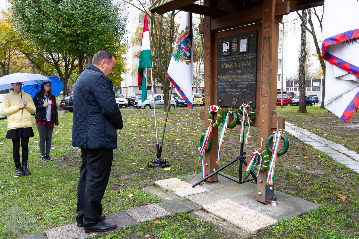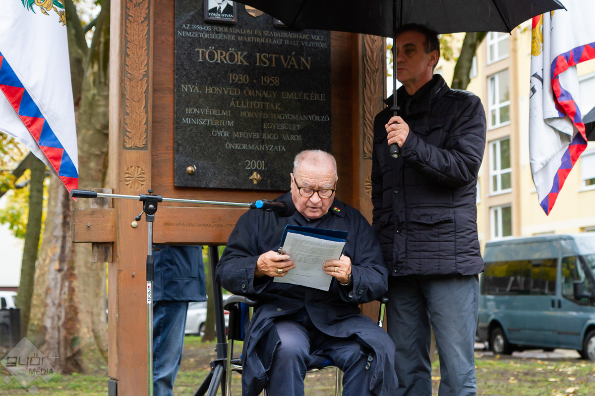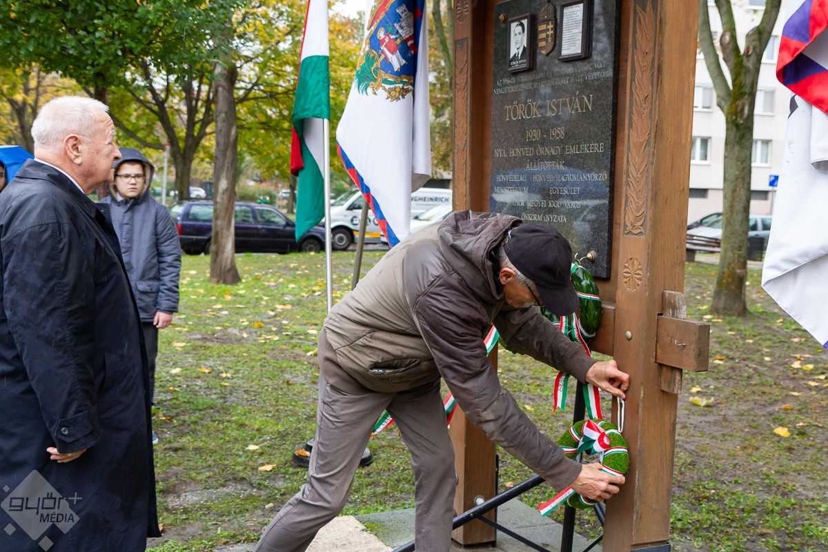 A zuhogó eső sem riasztotta el az emlékezőket a 65 éve kivégzett Török István tiszteletére rendezett koszorúzási ünnepségről. Az 1956-os forradalom mártírja, a nemzetőrség egykori győri vezetője előtt a róla elnevezett adyvárosi utcában felállított emlékműnél tisztelegtek. A hivatalos és civil szervezeteken kívül jelen voltak Török István családtagjai, valamint barátja és nemzetőr társa, Büki Lajos.