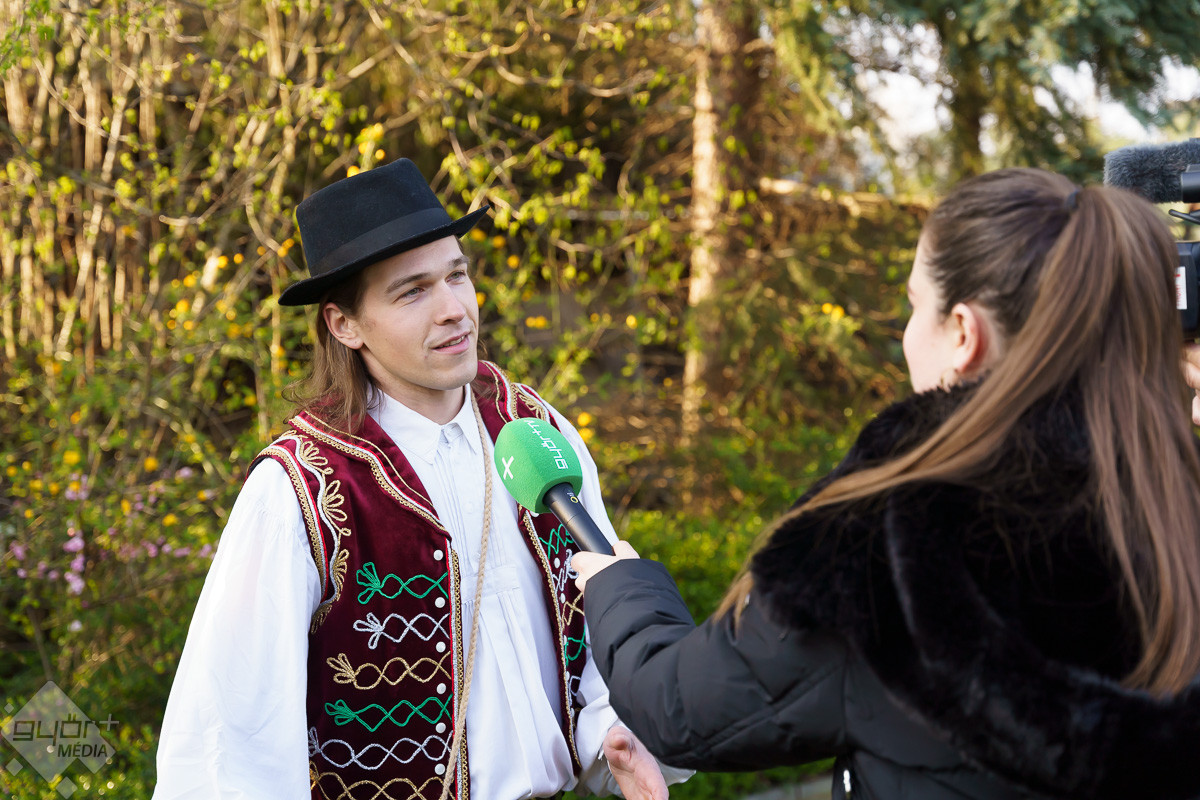 „Minden évben elmegyünk locsolni, mert nagyon fontosnak tartjuk a hagyományok tiszteletét és szeretetét. Ilyenkor egy kis szeletét mutatjuk be a tevékenységünknek, ami nagyon sokrétű: betlehemes műsort szoktunk adni, pünkösdölőt, táncházakat szervezünk, fő célunk pedig a népzene és a néptánc megszerettetése.”– kezdte beszámolóját Kelemen Attila táncos, aki arról is beszélt, hogy a ménfőcsanaki Malom utcában több, mint tíz lányt locsoltak meg, de több házhoz, ismerőshöz is mennek és mindenhol időznek egy keveset.