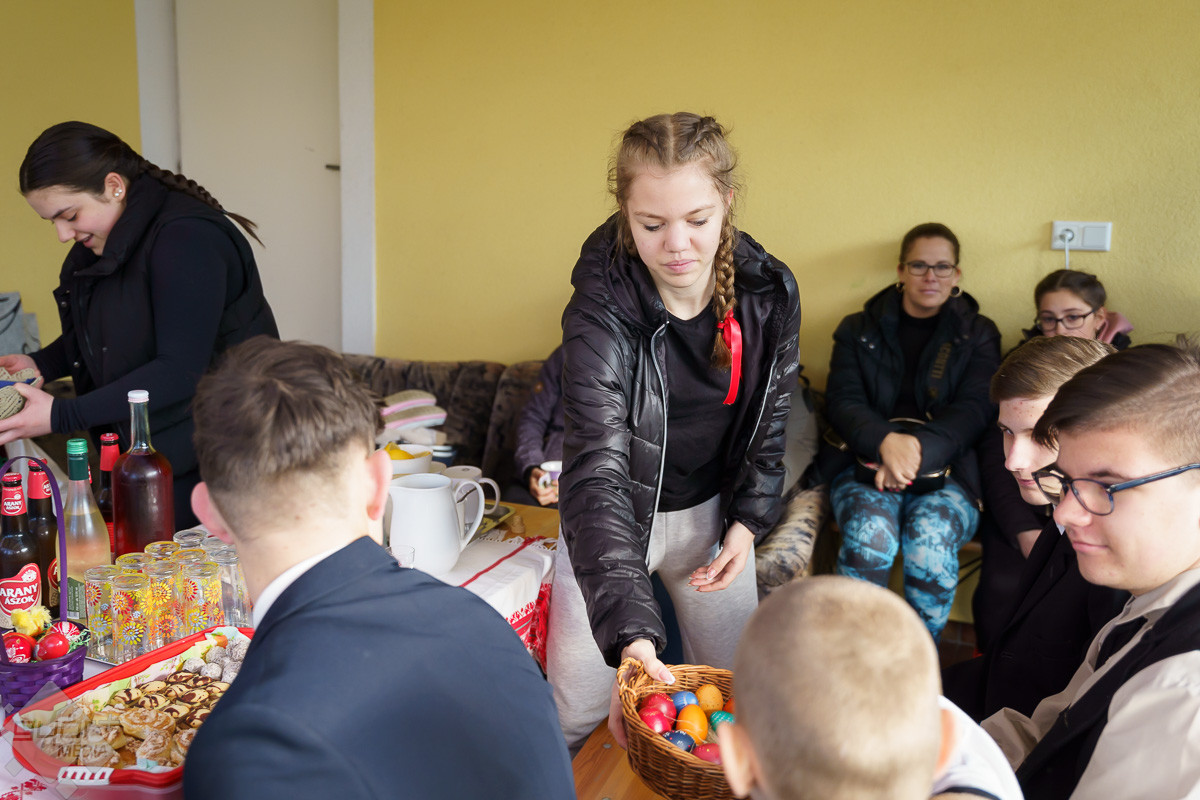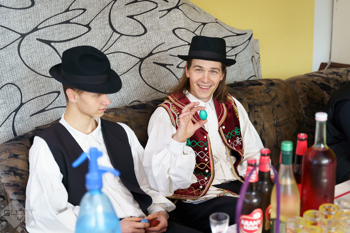 A lányok arcán nem volt őszinte az öröm, de szívesen fogadták a legényeket, akiknek a sok finomságon kívül piros tojás is járt a locsolásért.