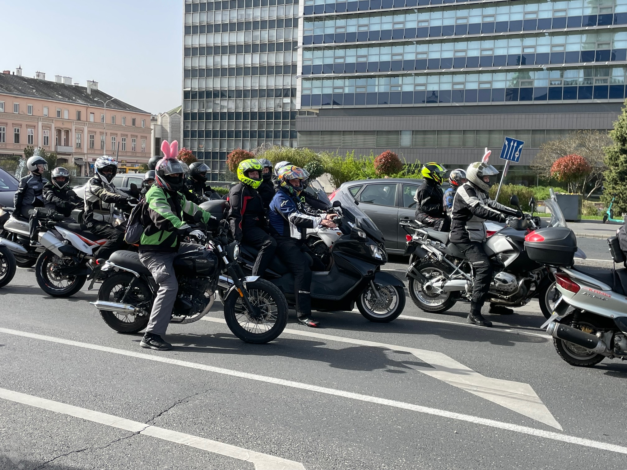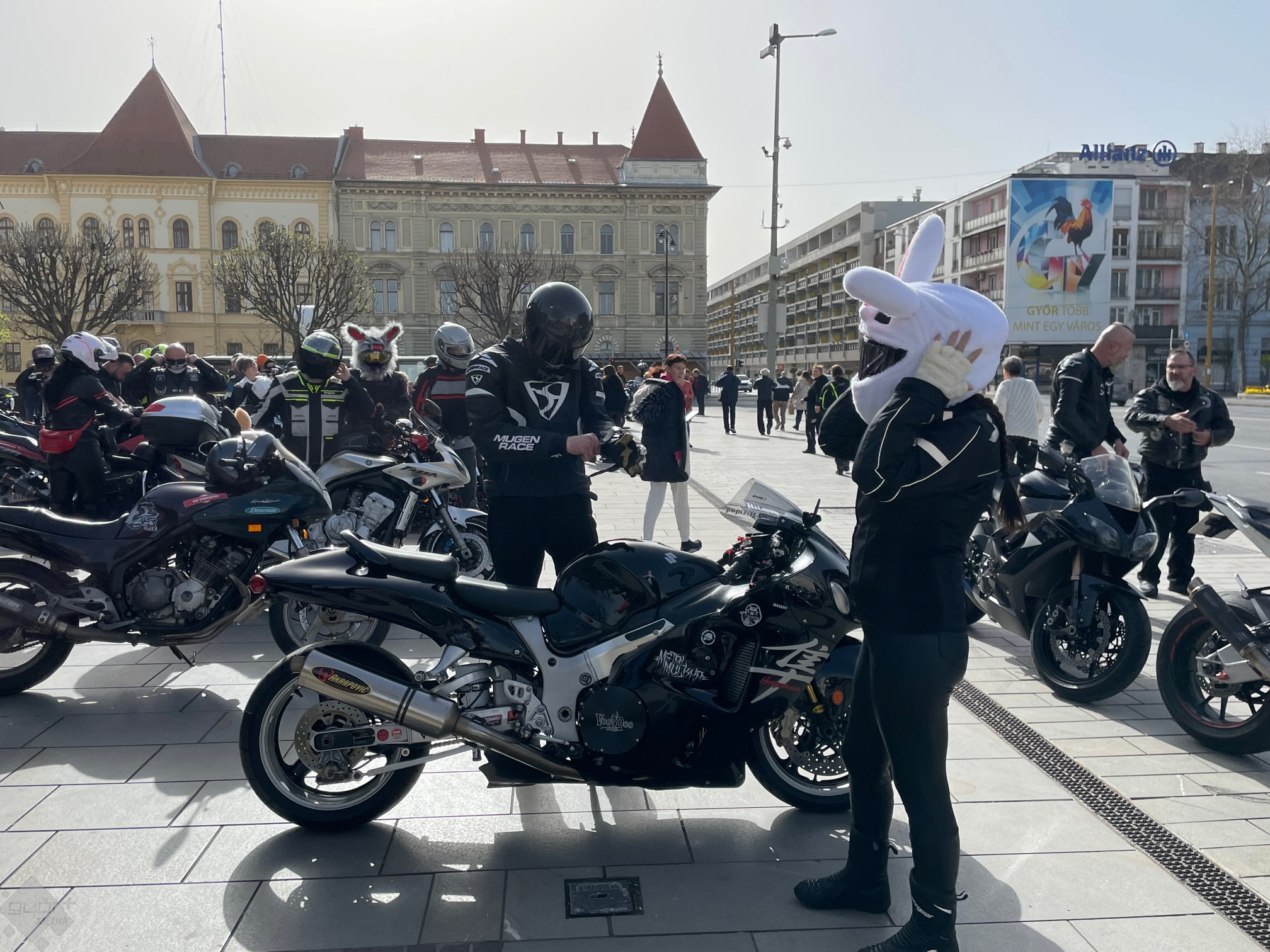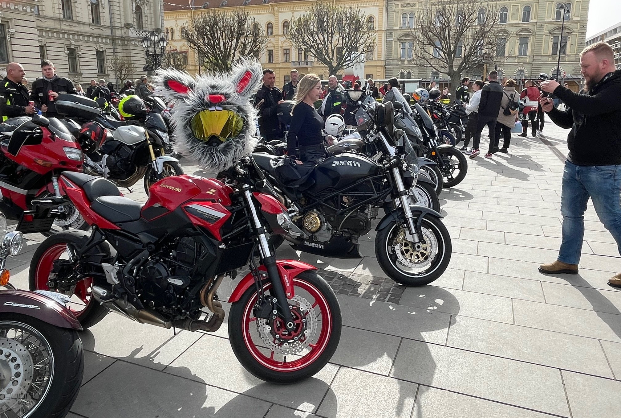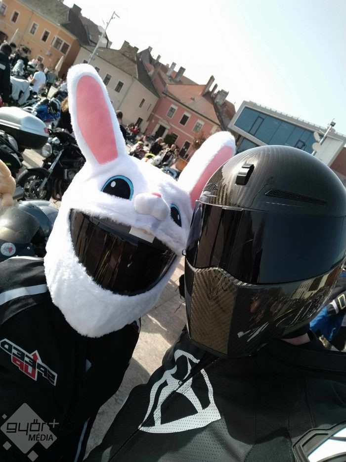 A Győr+ Média a Városháza előtt várta a motorosokat, akik közül sokan tényleg húsvéti hangulatban gurultak: nyuszifülek a bukósisakokon, nyuszijelmez, vagy éppen plüssnyuszik díszítették a szebbnél szebb kétkerekűeket. Örültek is nekik nagyon a kicsik és a nagyobbak is, érdeklődve szemlélték a szebbnél-szebb motorokat és nem győztek köszönetet mondani a csokikért és a közös fotókért. Igazi klassz közösségi élmény volt a belvárosi találkozási pont.