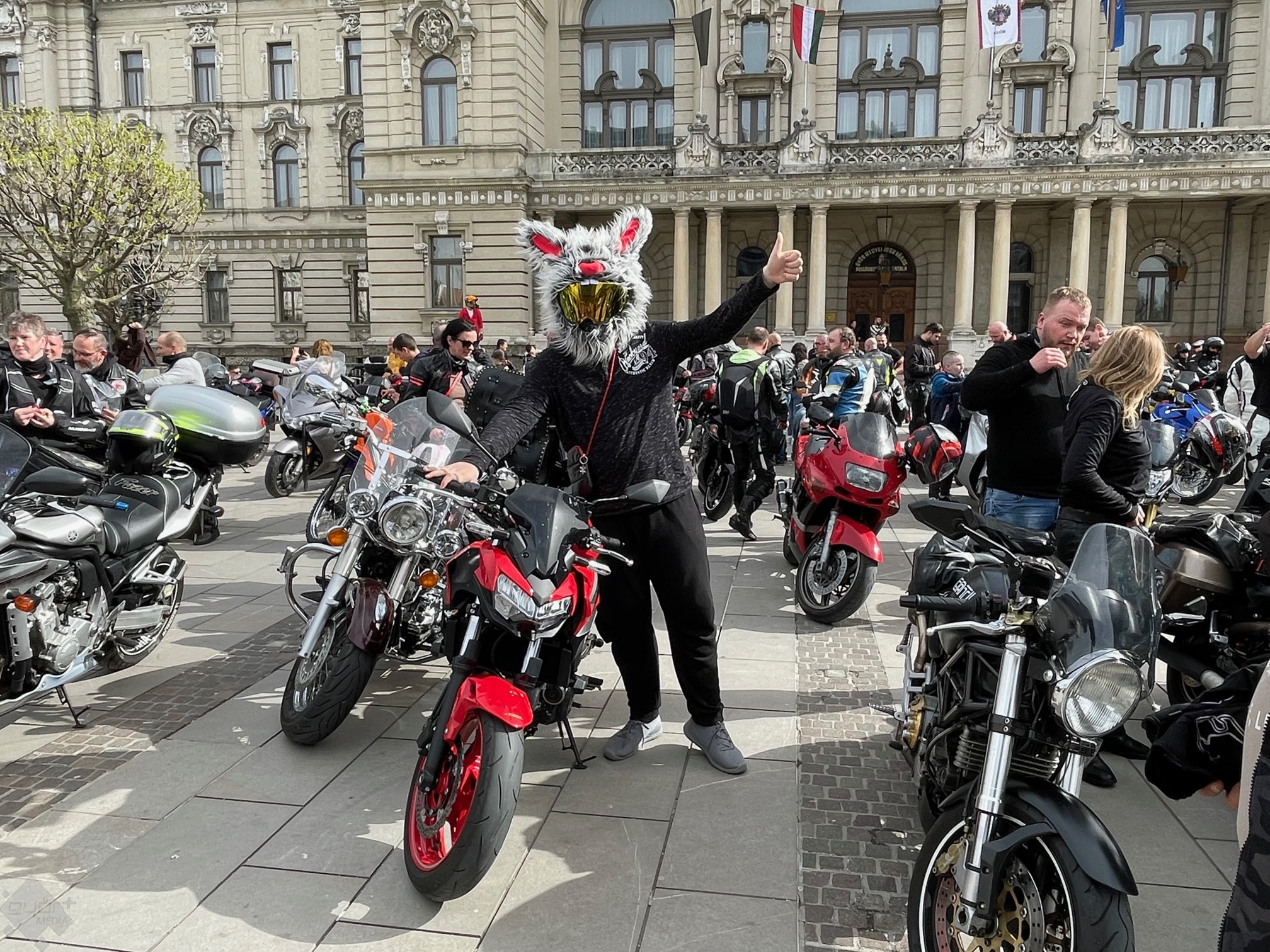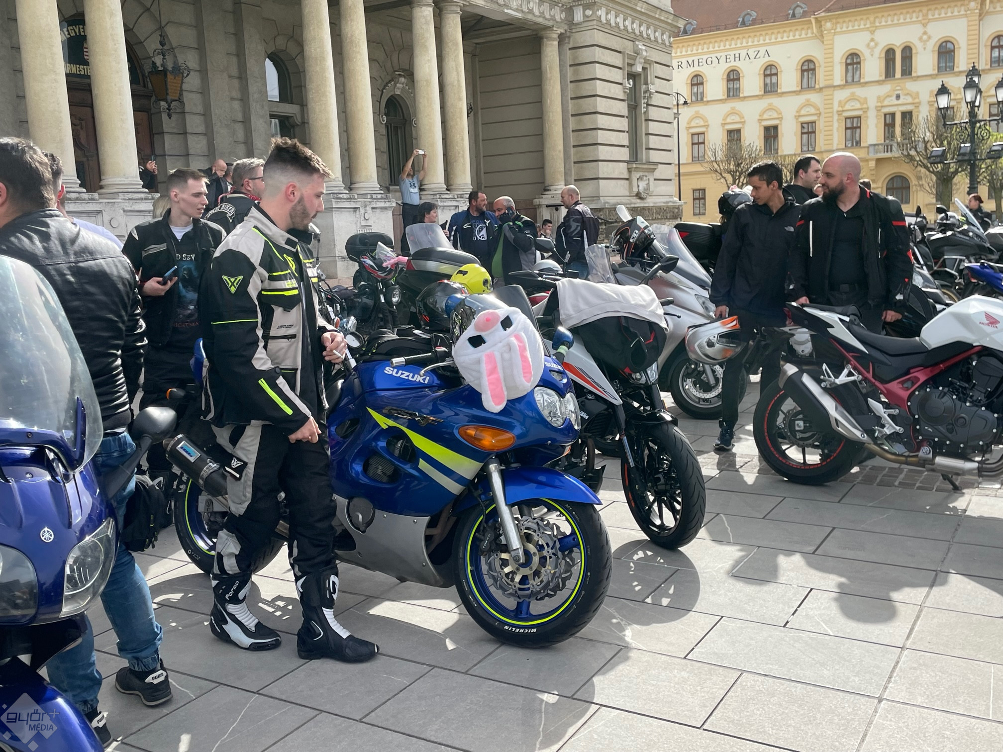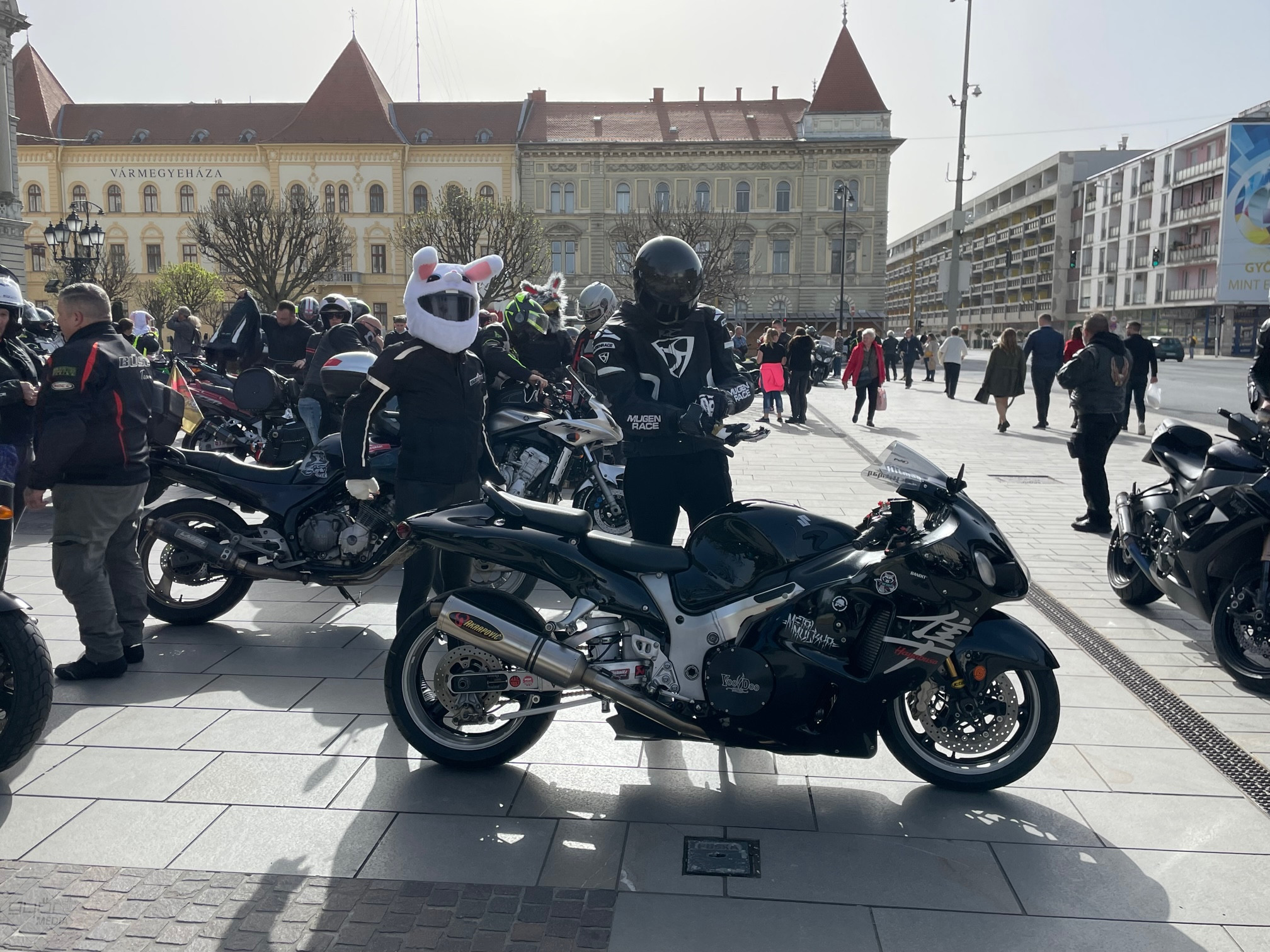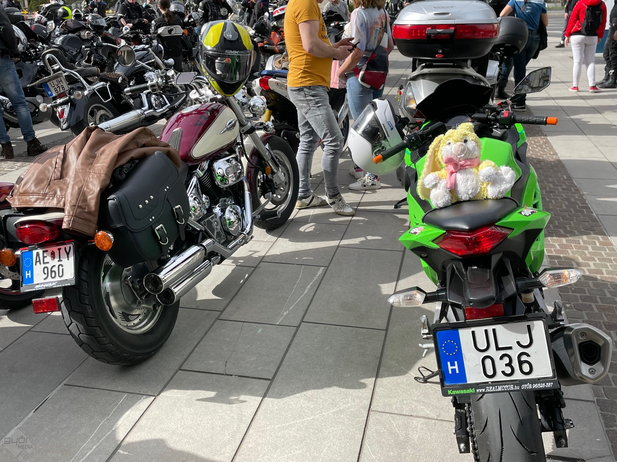 A Győr+ Média a Városháza előtt várta a motorosokat, akik közül sokan tényleg húsvéti hangulatban gurultak: nyuszifülek a bukósisakokon, nyuszijelmez, vagy éppen plüssnyuszik díszítették a szebbnél szebb kétkerekűeket. Örültek is nekik nagyon a kicsik és a nagyobbak is, érdeklődve szemlélték a szebbnél-szebb motorokat és nem győztek köszönetet mondani a csokikért és a közös fotókért. Igazi klassz közösségi élmény volt a belvárosi találkozási pont.