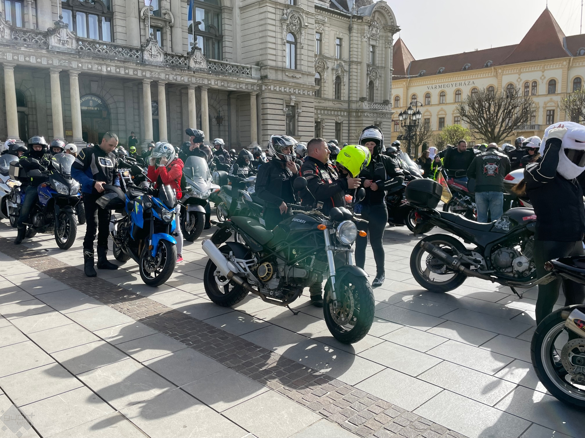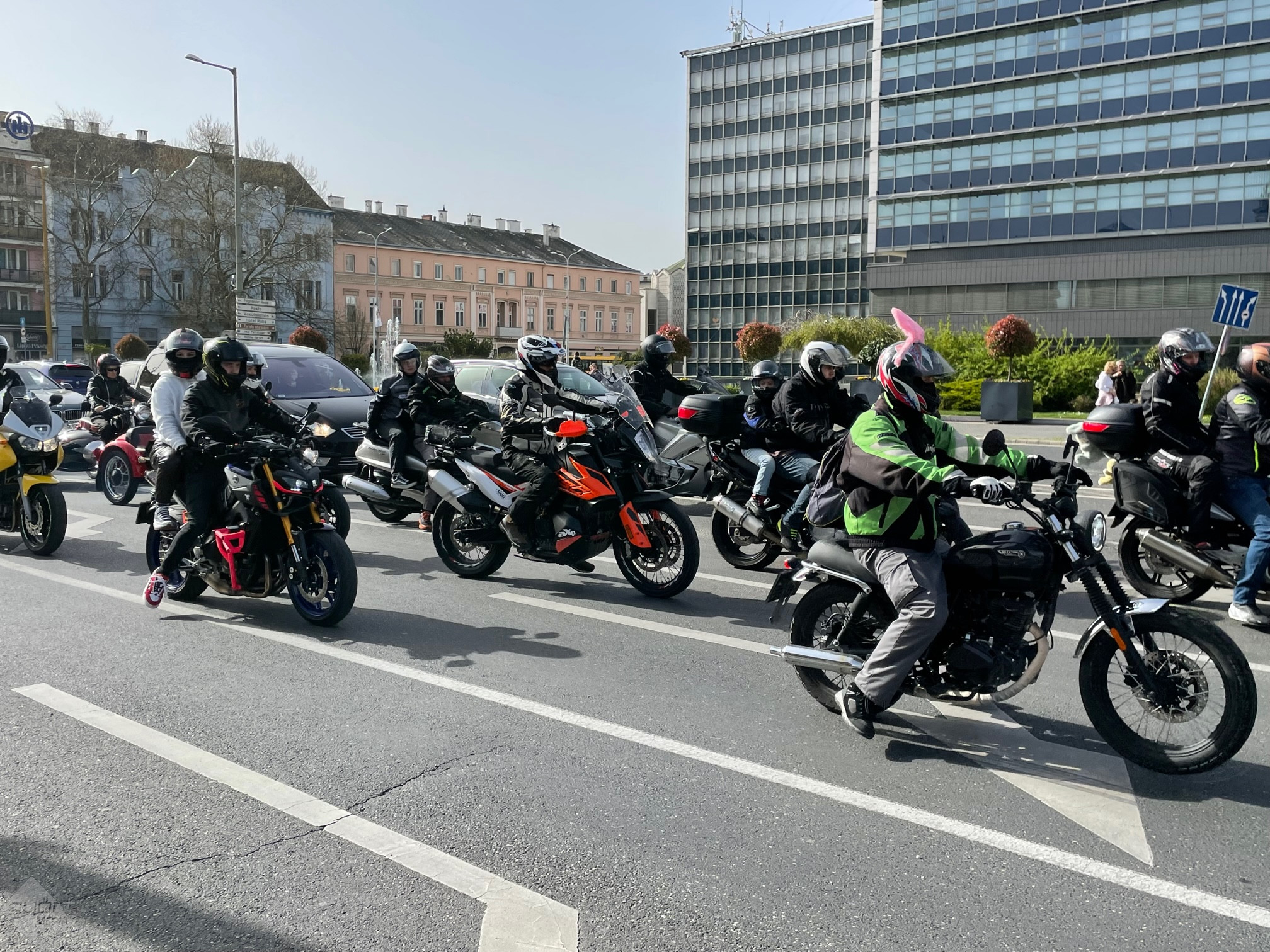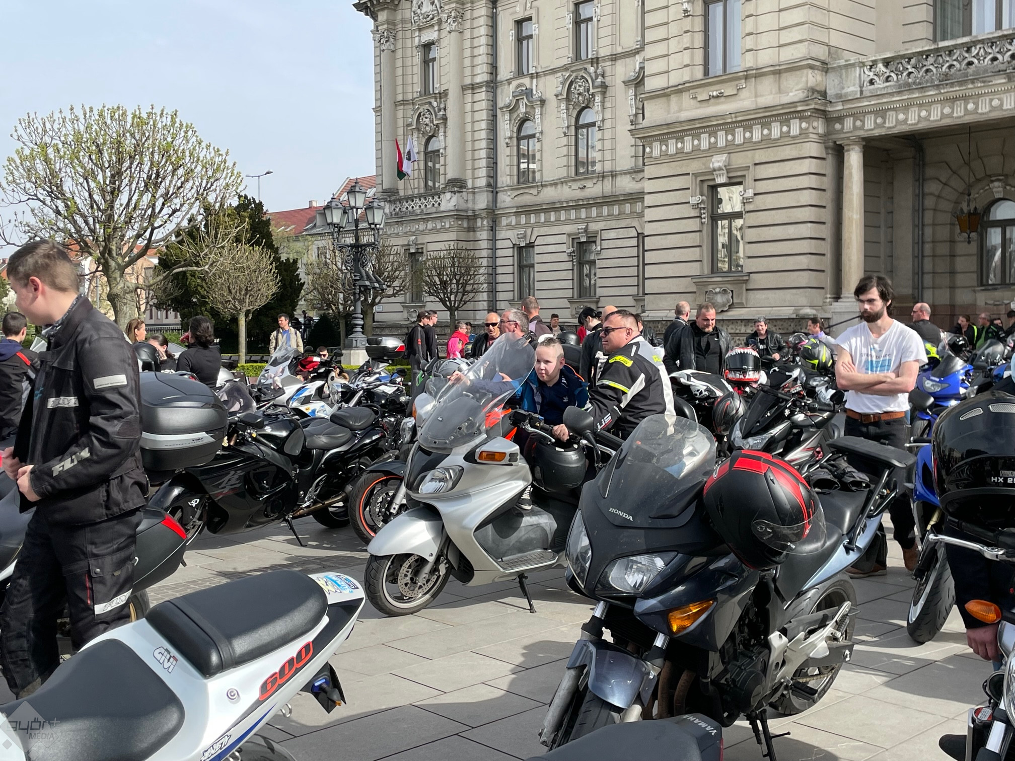 Most sem volt ez másként: a 14 órára, a Praktiker parkolójában meghirdetett találkozóra mintegy 90 motoros gyűlt össze, hogy elinduljanak a jól bevált útvonalon, s először a Városháza teret érintve eljussanak a végcélként megjelölt Dunakapu térhez.