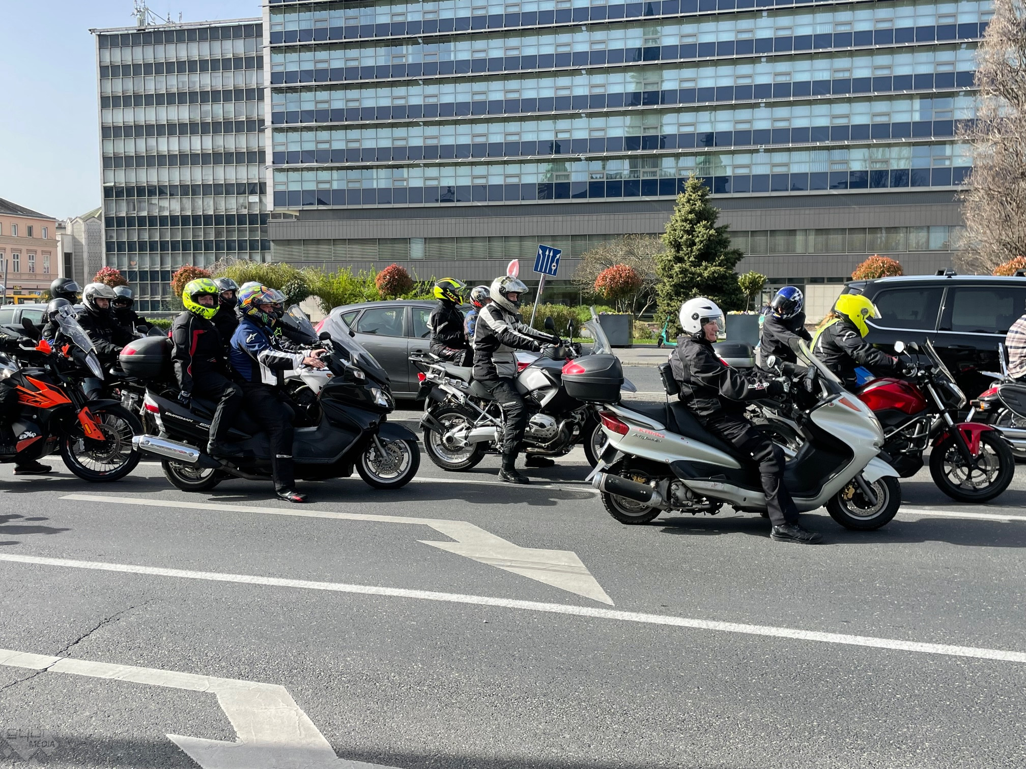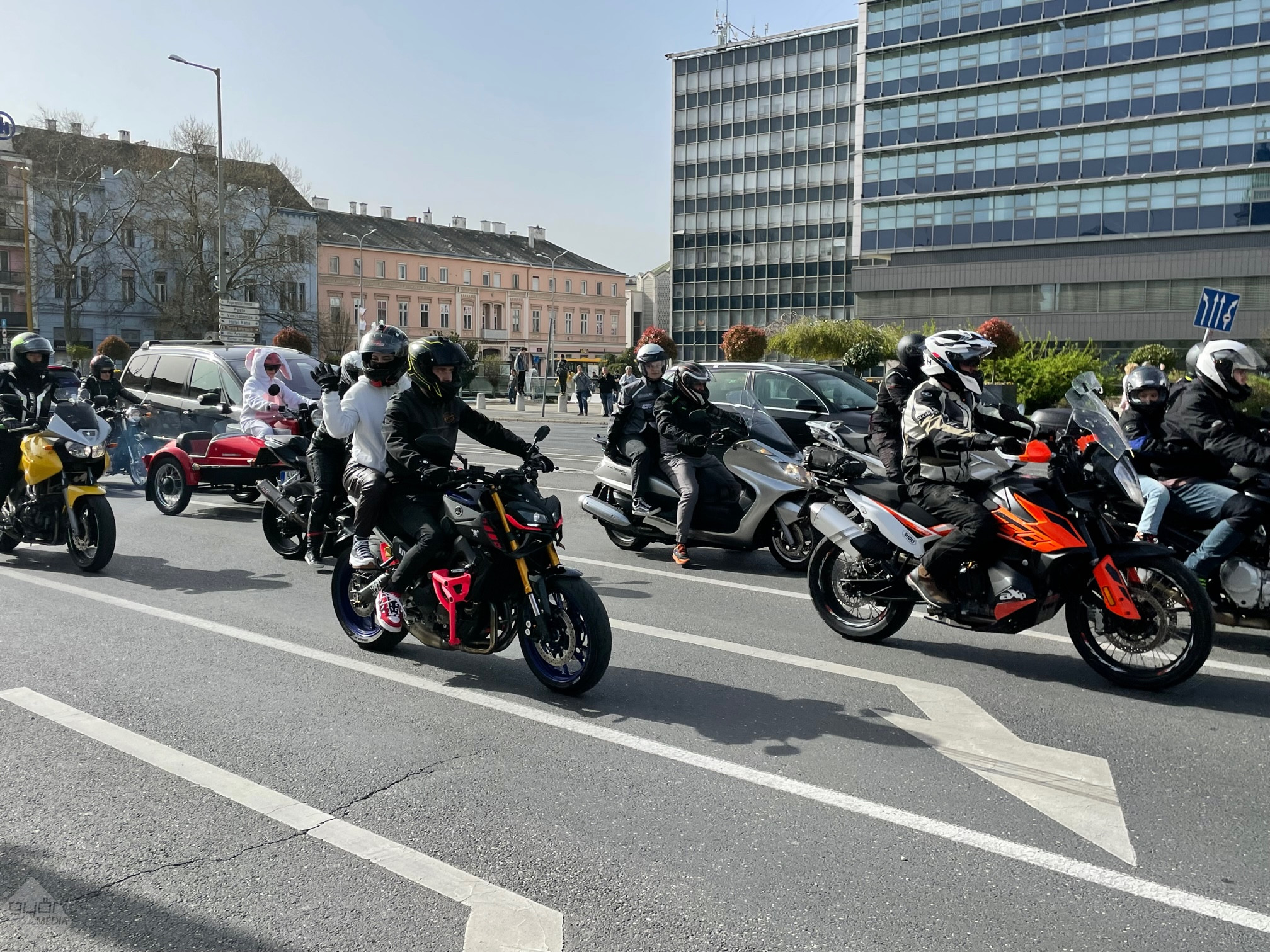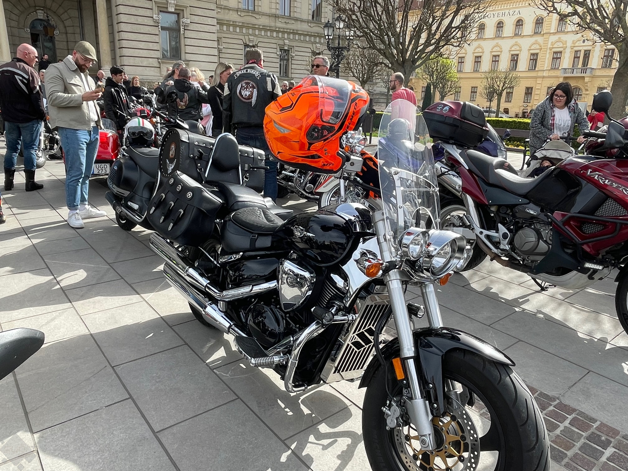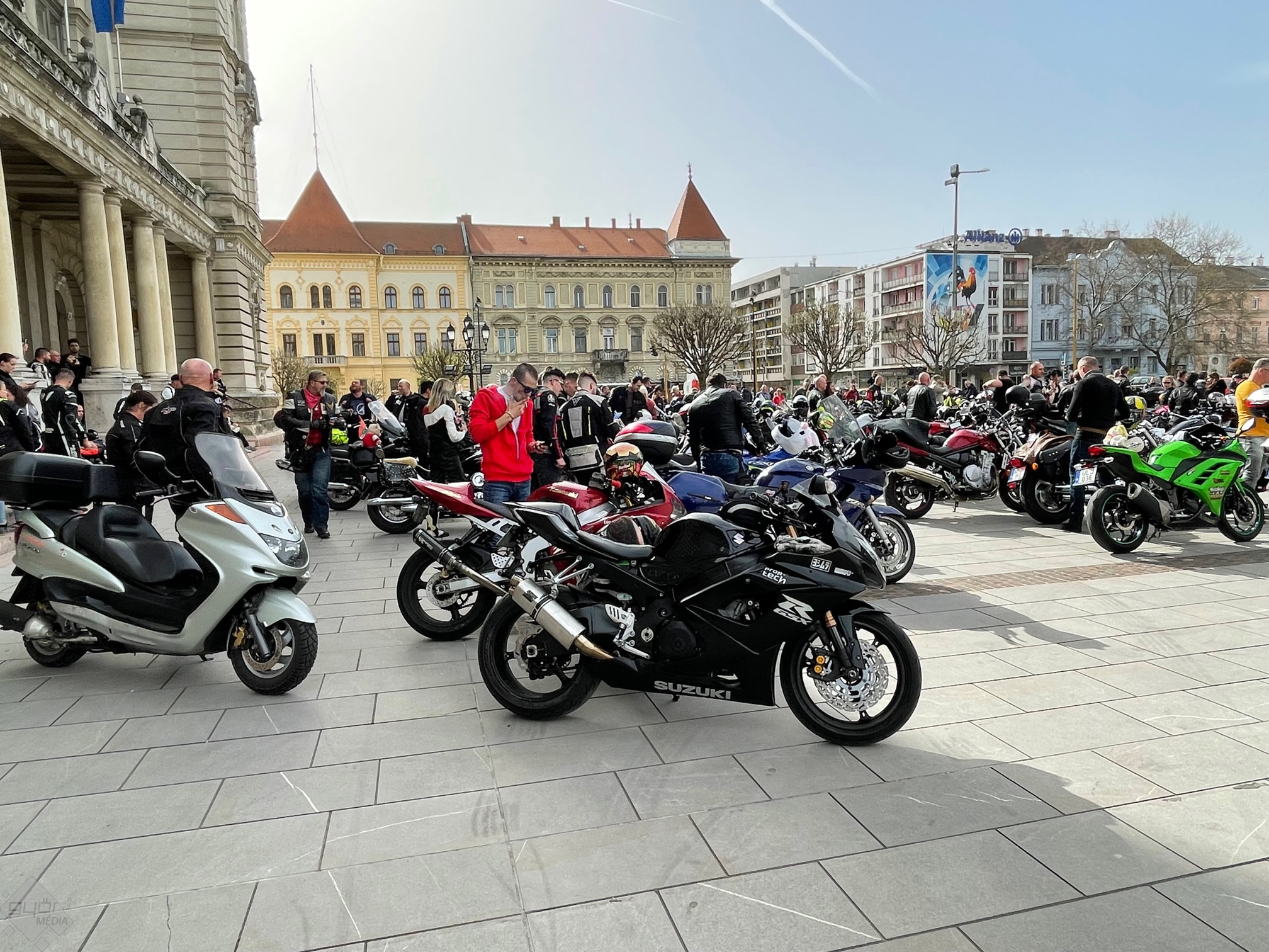 Most sem volt ez másként: a 14 órára, a Praktiker parkolójában meghirdetett találkozóra mintegy 90 motoros gyűlt össze, hogy elinduljanak a jól bevált útvonalon, s először a Városháza teret érintve eljussanak a végcélként megjelölt Dunakapu térhez.