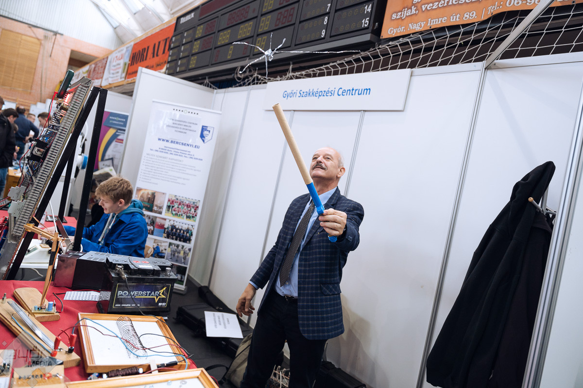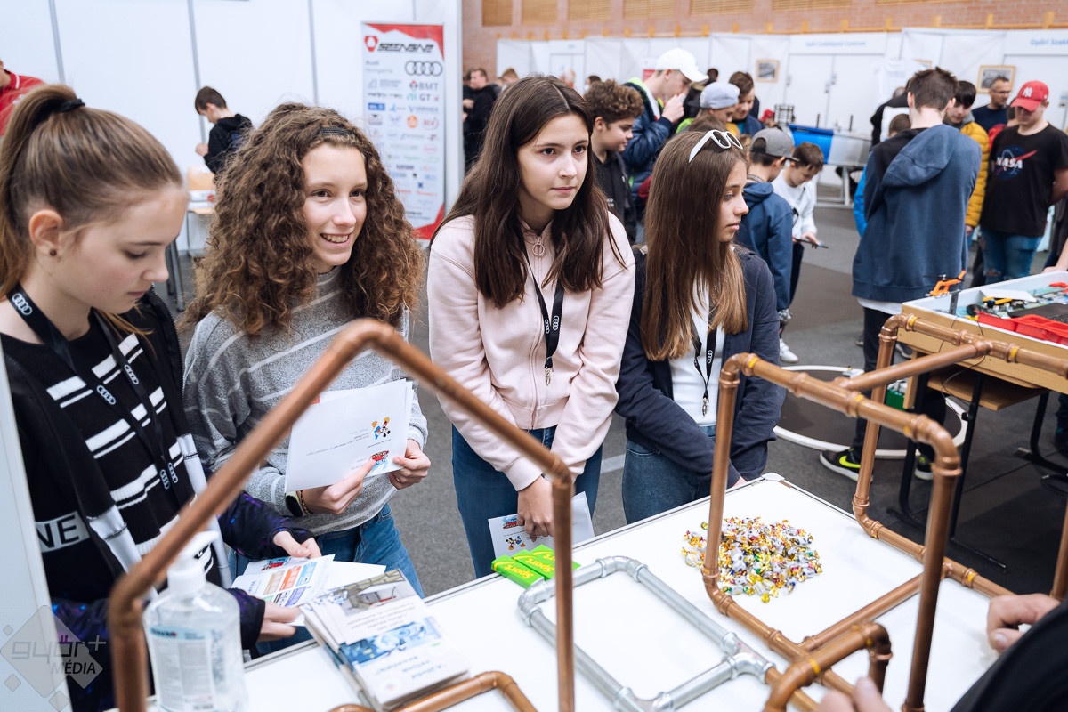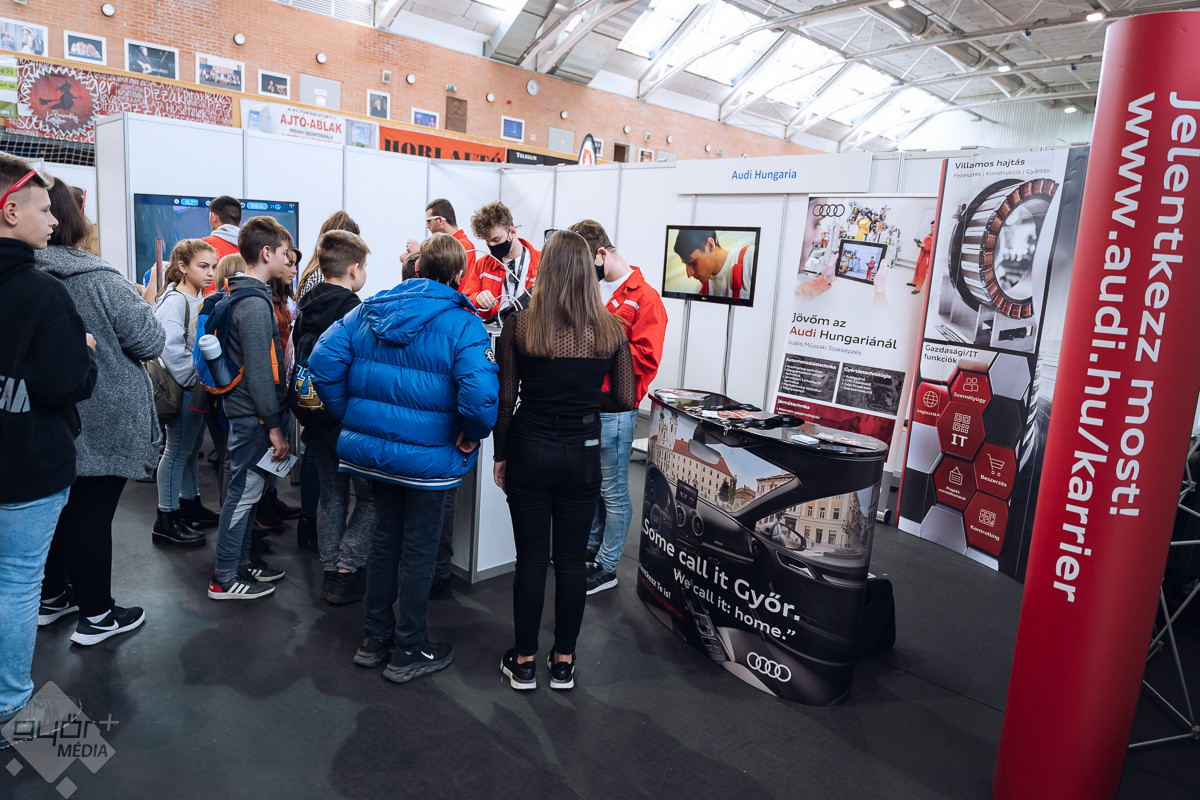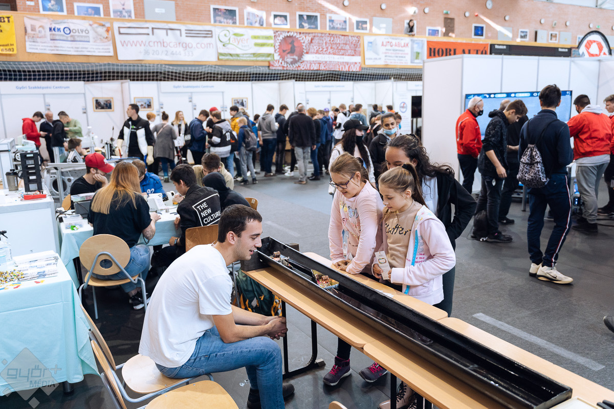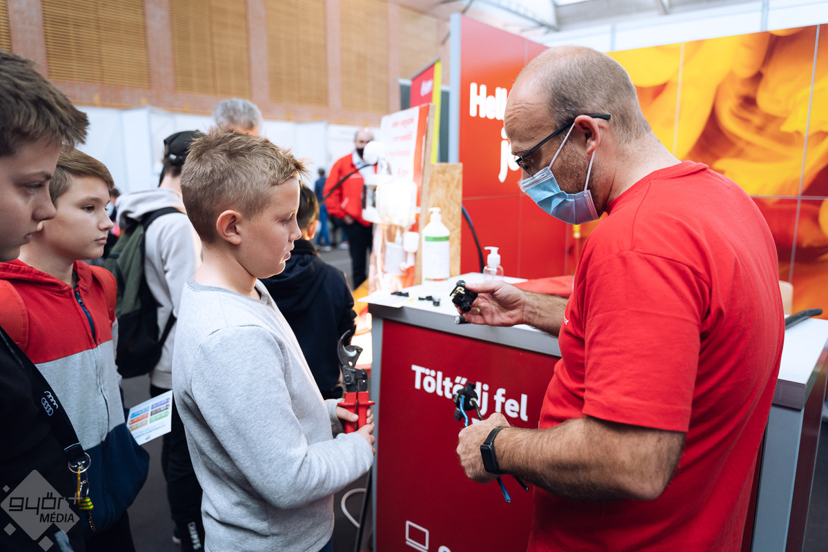 Huszonkét kiállítóval találkozhattak a gyerekek a standokon. Itt vannak a Győri Szakképzési Centrum iskolái, illetve cégek, vállalatok. Idén újdonságnak számít, hogy a rádiózás kulisszatitkaival is megismerkedhetnek a diákok. A cégek egyébként mindig alkalmazkodnak a régióhoz, és természetesen az aktuális trendekhez.” – mondta el a Győr Plusznak Danyi Vilmos főszervező, ötletgazda.