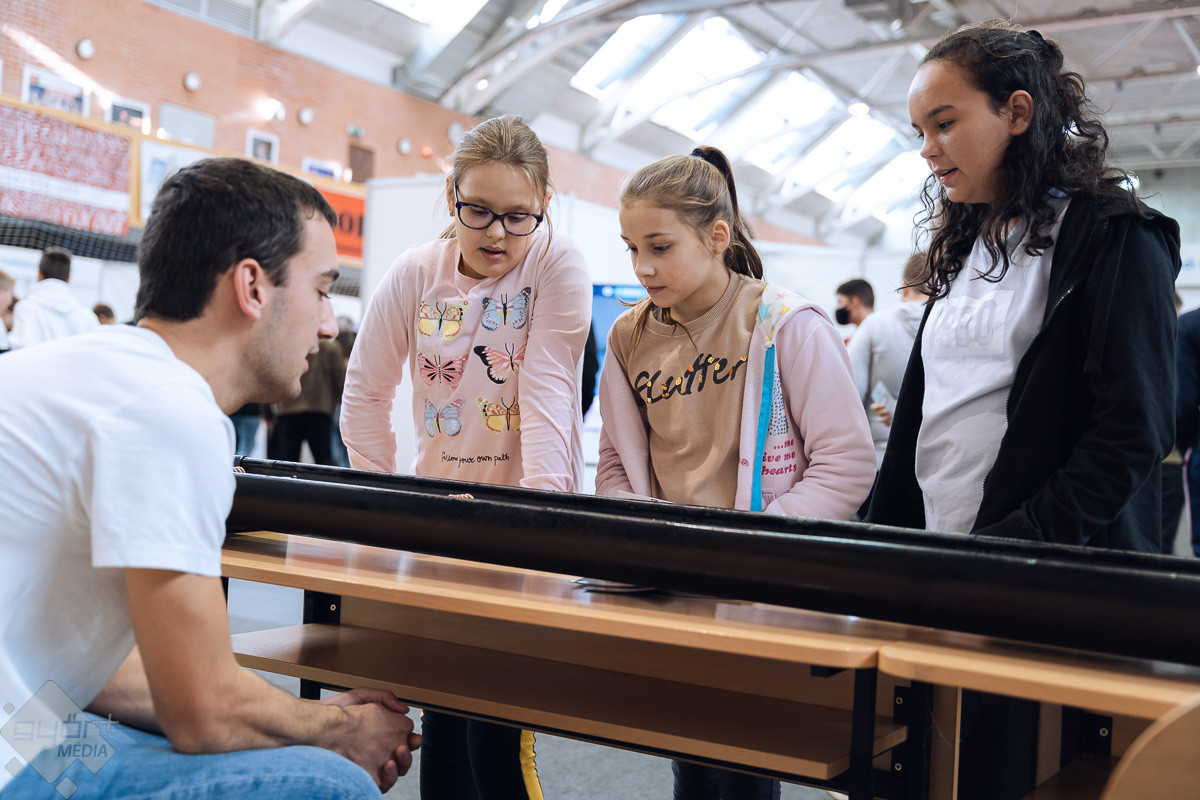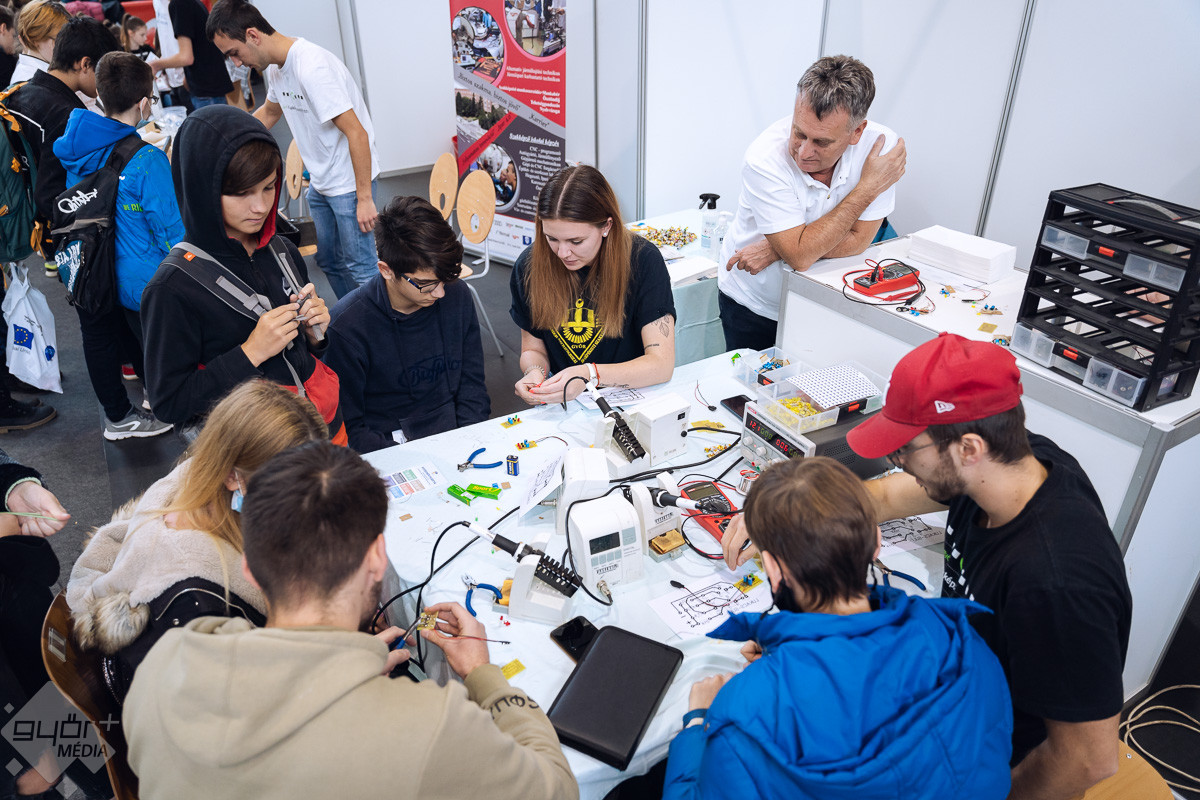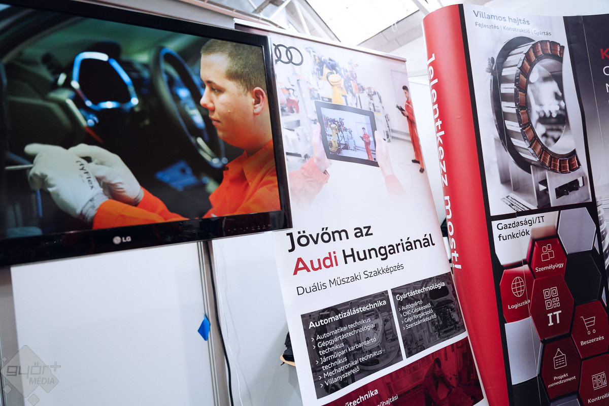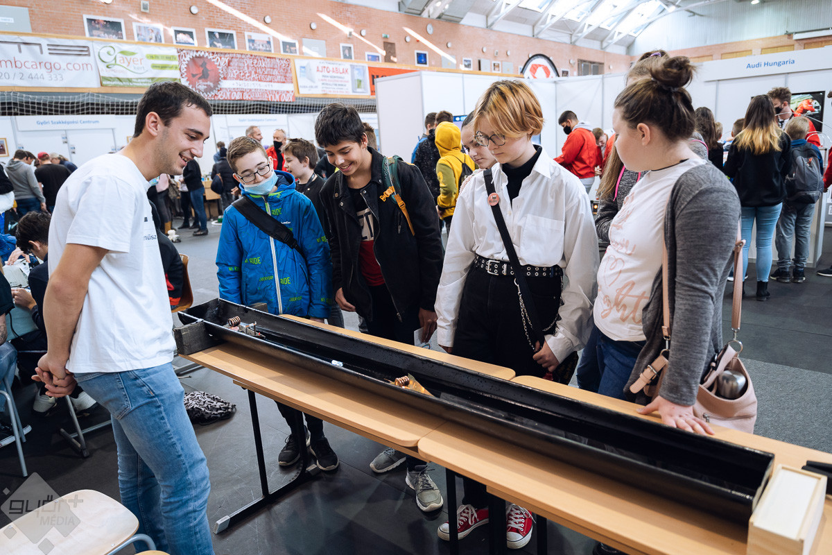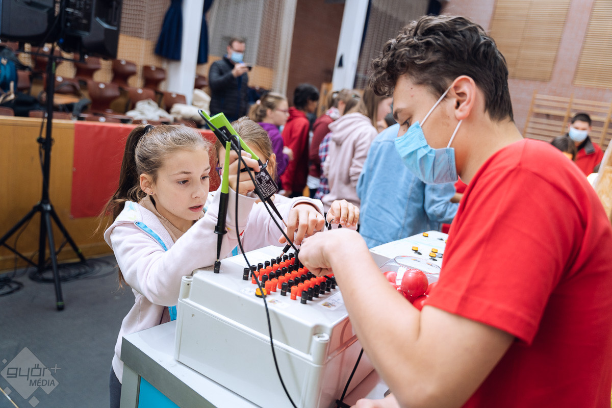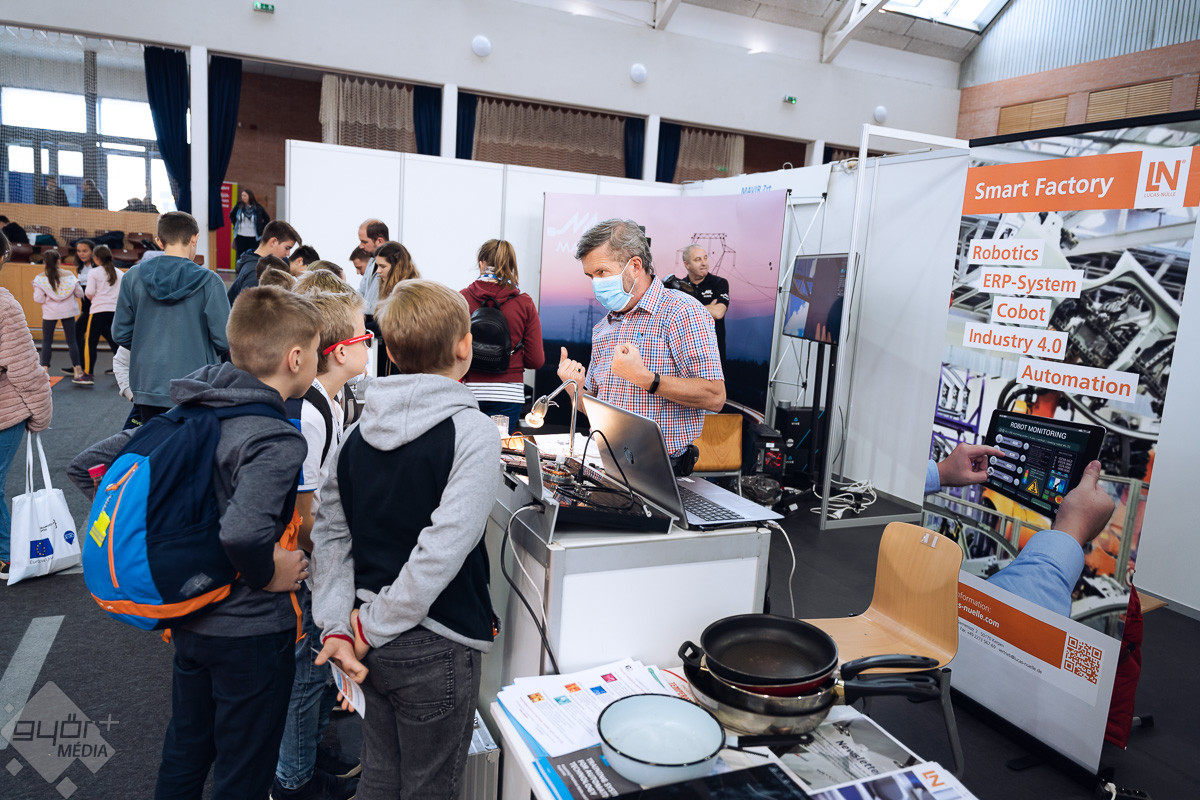 Huszonkét kiállítóval találkozhattak a gyerekek a standokon. Itt vannak a Győri Szakképzési Centrum iskolái, illetve cégek, vállalatok. Idén újdonságnak számít, hogy a rádiózás kulisszatitkaival is megismerkedhetnek a diákok. A cégek egyébként mindig alkalmazkodnak a régióhoz, és természetesen az aktuális trendekhez.” – mondta el a Győr Plusznak Danyi Vilmos főszervező, ötletgazda.