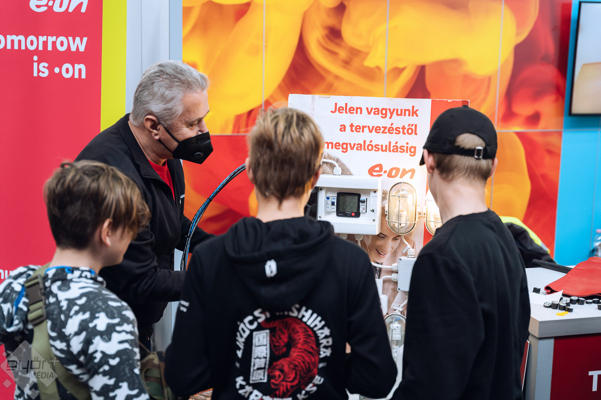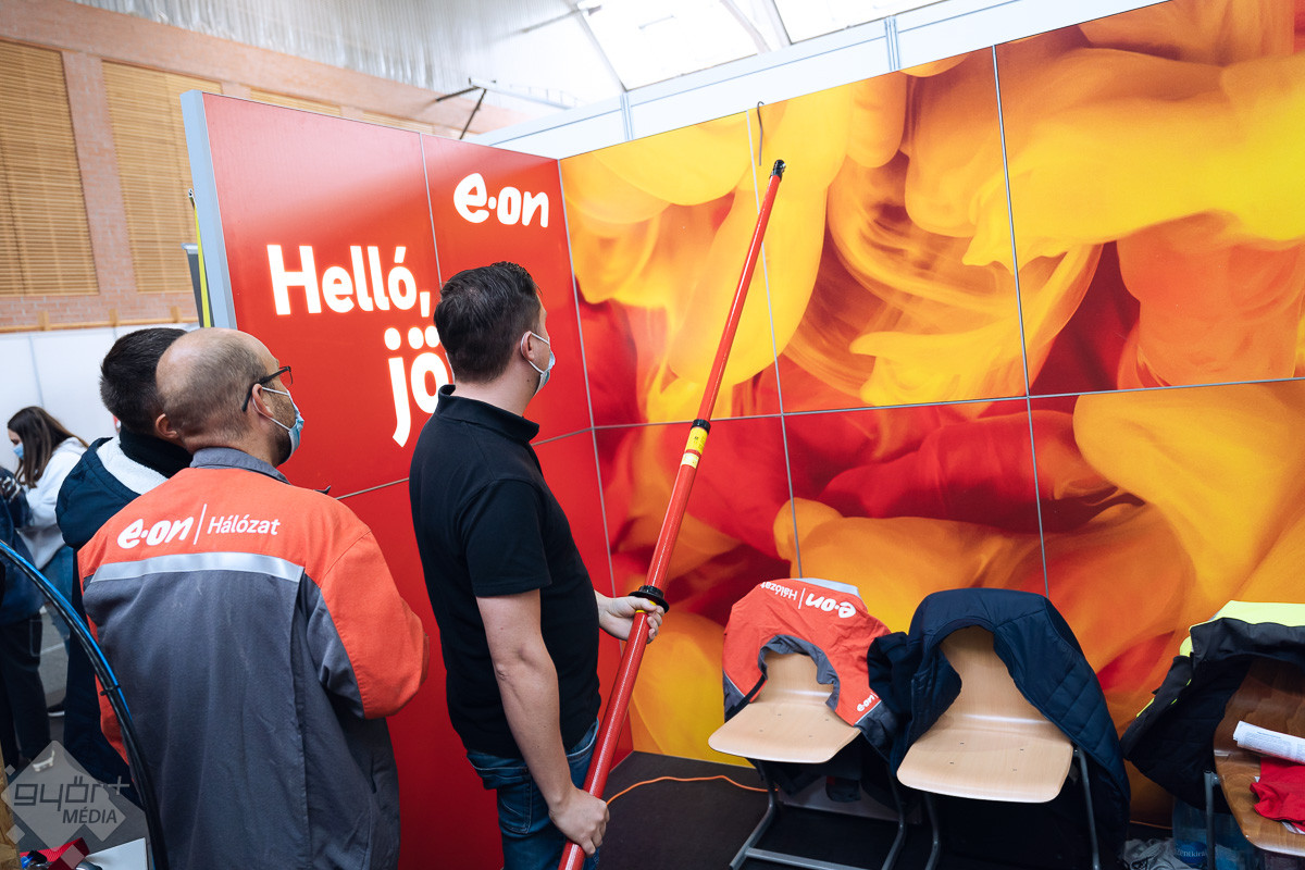 „Az EON felismerte azt, hogy az utánpótlás megléte egy hosszú folyamat amiben részt kell vállalni. Ez erőteljes megjelenik cégünknél, hisz ott vagyunk a duális szak képzésben. Ennek a gyakorlati támogatása itt a győri szervezetünknél is jelen van. Ezen a fesztiválon azt mutatjuk meg, hogy mivel foglalkozunk a hétköznapokban. A külső térben ott vannak azok a munkagépek, eszközök amit rendszeresen használunk.” – emelte ki Kátai Tamás E.ON Észak-dunántúli Áramhálózati Zrt. győri üzemének igazgatója.