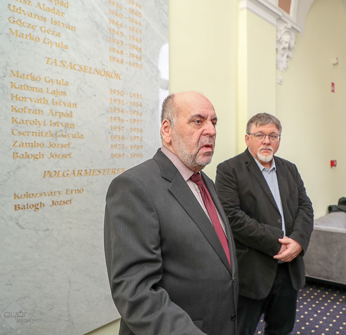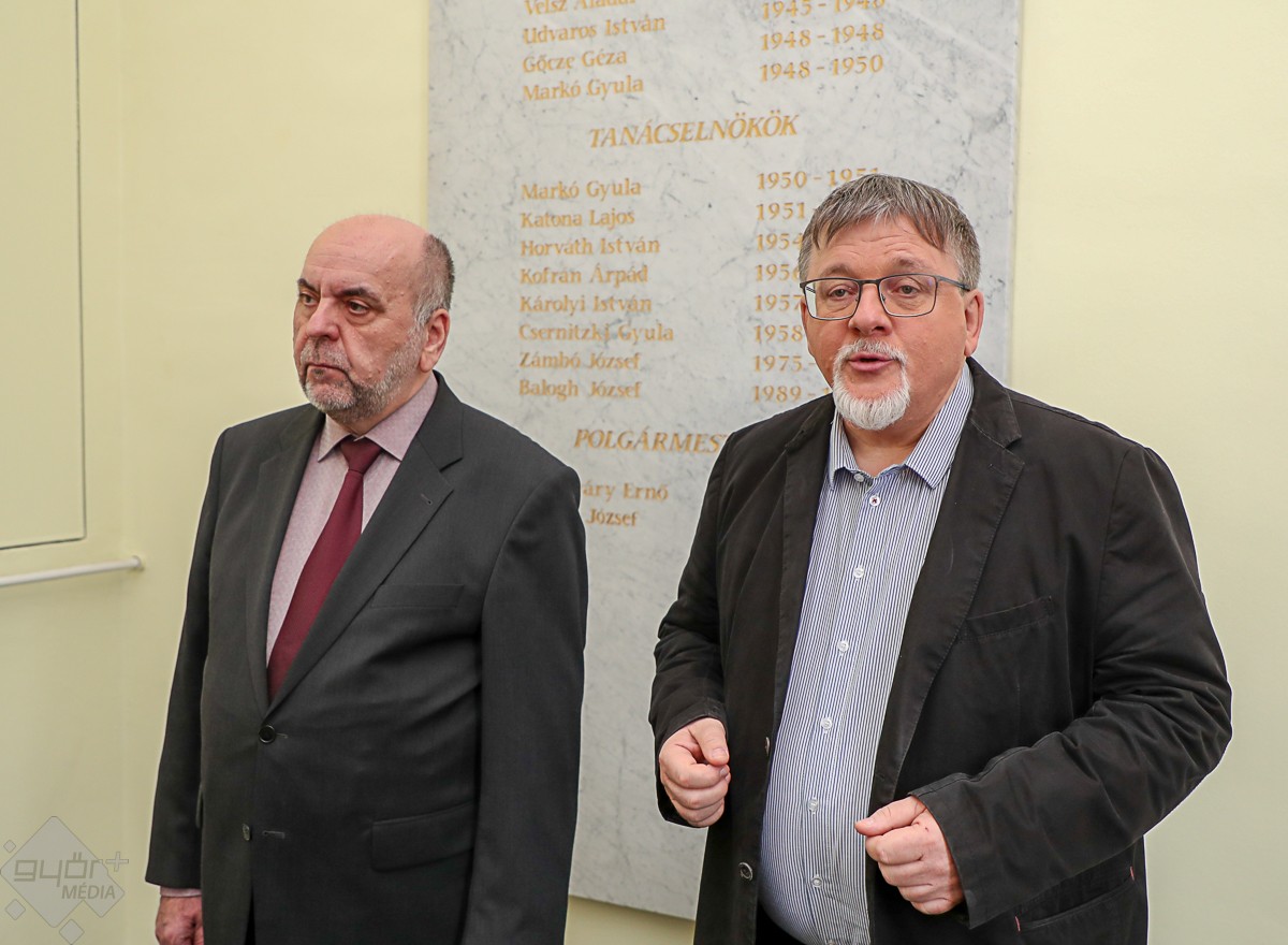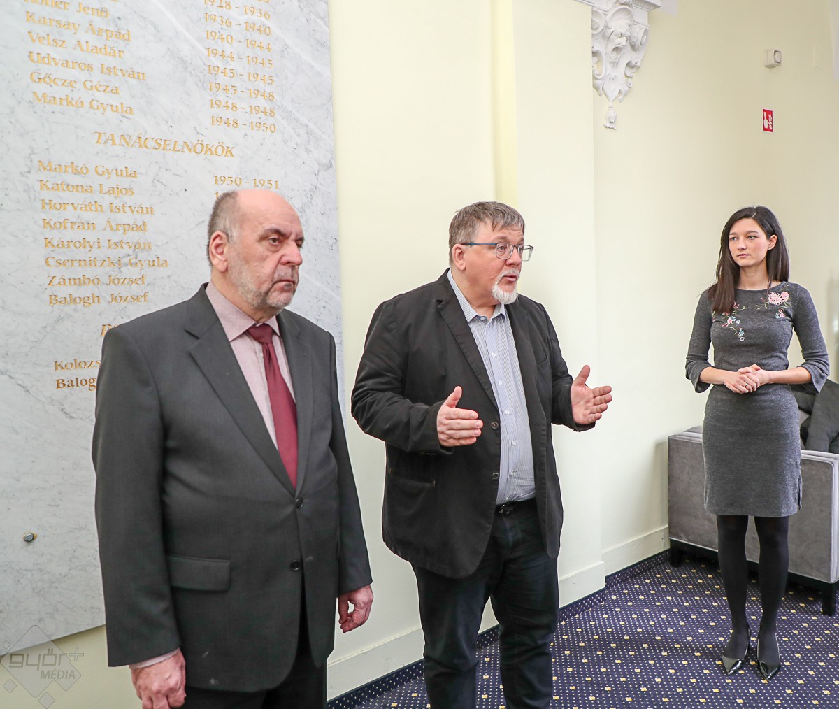 Az igazgató azt is elmondta, hogy a tábla „elődje” a régi városháza épületben, vagyis a levéltárban látható, amelyen az 1900 előtti városbírák és polgármesterek nevei szerepelnek. A városházán 1998-ban állított táblát szerdán reggel emelték le a helyéről, és a Rómer Flóris Művészeti és Történeti Múzeumba szállítják.