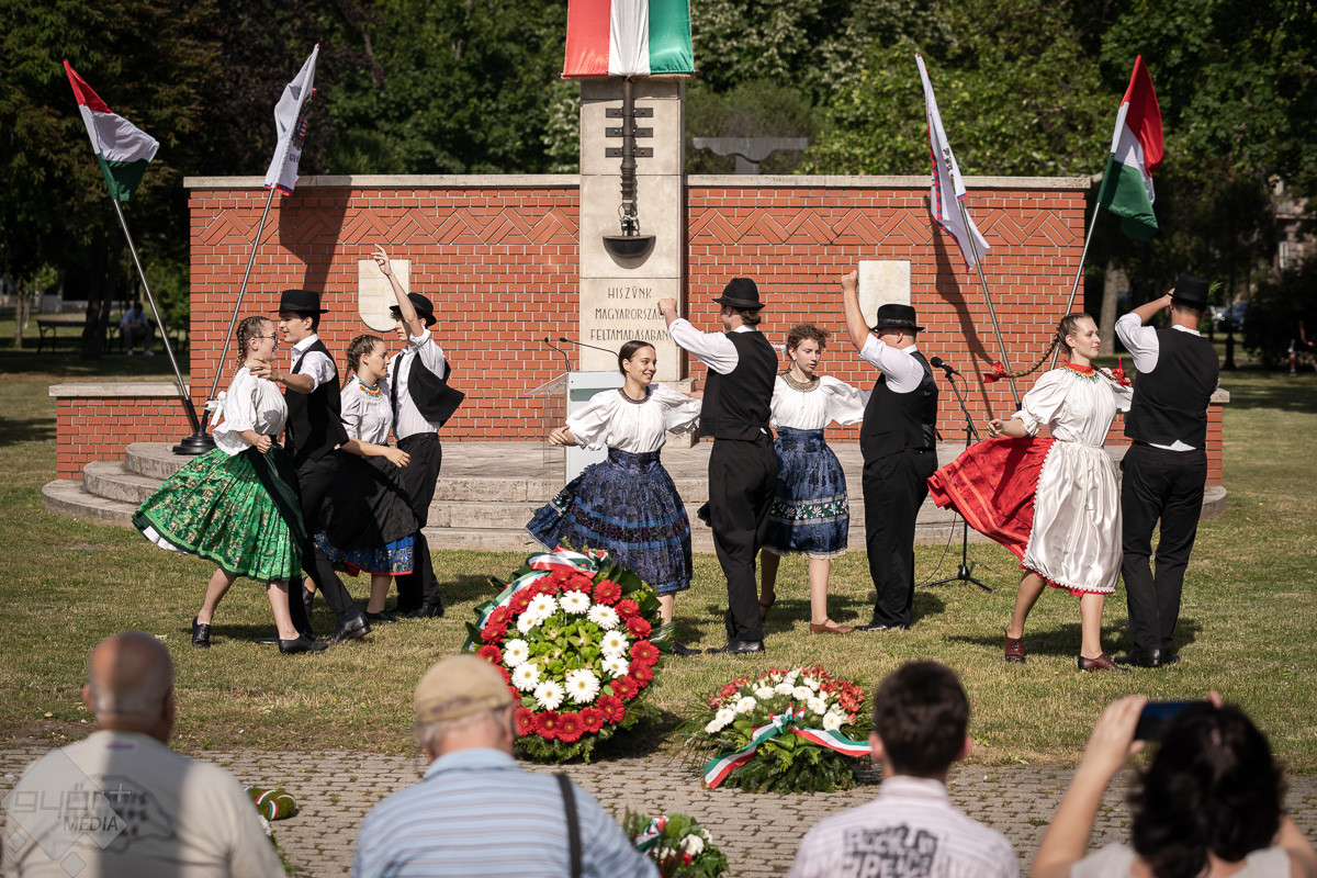 A Nemzeti Összetartozás Napján, a magyarság egyik legnagyobb tragédiájára, a történelmi Magyarországot szétdaraboló, a magyar nemzetet több állam fennhatósága alá szorító békediktátumra emlékeztek szerdán az Országzászló-emlékműnél a városi ünnepségen.