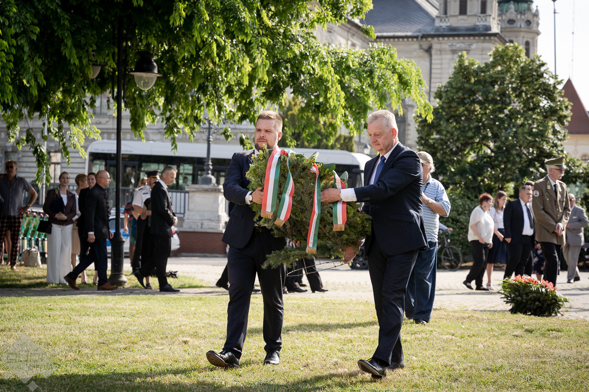 Pintér Bence polgármester megemlékezésében többek között úgy fogalmazott, hogy a városvezetőknek ma az a feladatuk, hogy tartalommal töltsék meg az összetartozást. „A mi dolgunk az, hogy ne csak akkor legyen így, amikor az állatokat tizedelő vírus határokat nem ismerve támad, ne csak akkor jussanak eszünkbe néhány tíz kilométerrel arrébb élők, amikor a DAC szurkolóit verik a szlovák rendőrök, ne csak akkor gondoljunk Erdélyre, amikor elárasztja az ár és beszakad a bánya, és ne csak akkor gondoljunk Kárpátaljára, amikor lövik az oroszok. A mi dolgunk, hogy a mindennapokat is megtöltsük az együvé tartozás érzésével. Ehhez közös programokat, együttműködéseket kell szerveznünk, legyen szó sportról, kultúráról, vagy az önkormányzatok közötti egyeztetésekről közös ügyekről. Mert aztán ezeket az együttműködéseket, ha megszilárdulnak, csak akadályozni lehet, de egy tollvonással eltörölni nem.”