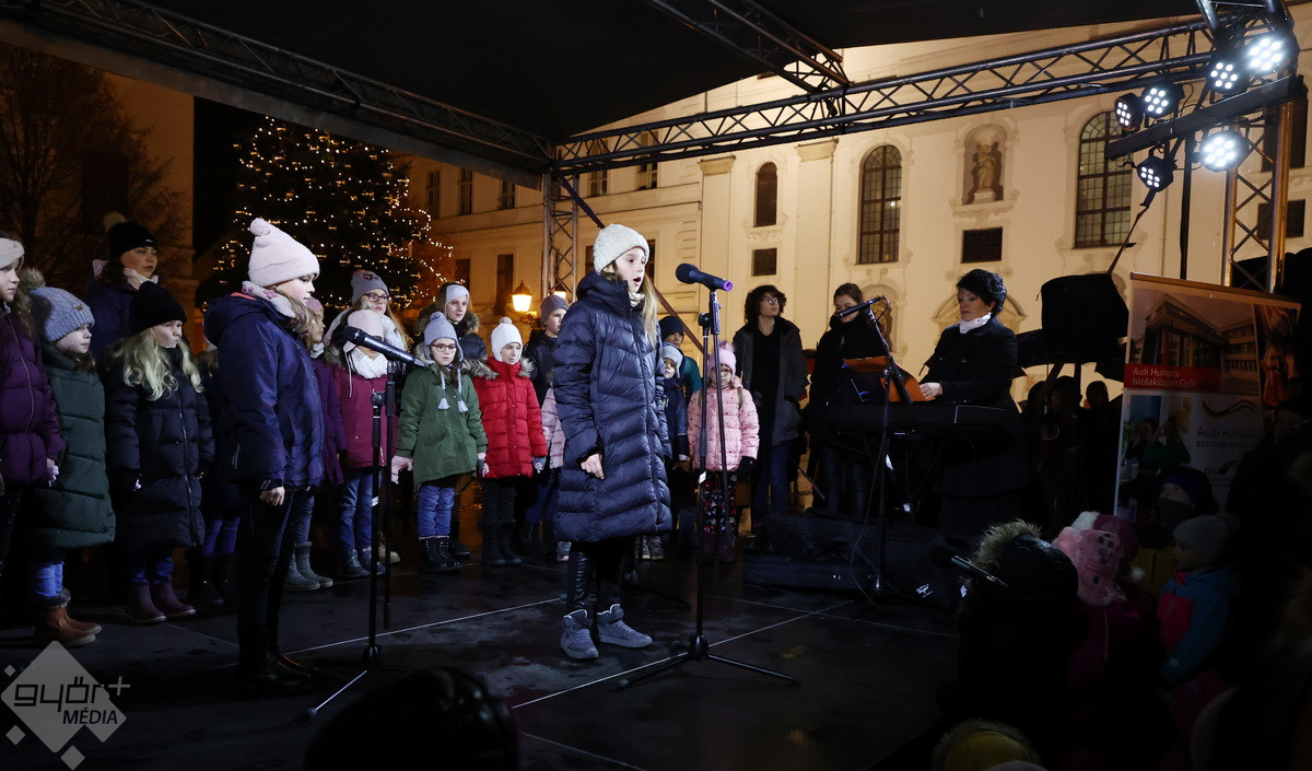 A szakadó decemberi eső ellenére sokan gyűltek össze a Széchenyi téren, hogy megnézzék a tehetséges fiatalok színvonalas, szívet melengető műsorát. Csakúgy, mint az előző héten, ezúttal is az Audi Iskolaközpont diákjainak műsorát láthatta a közönség. Már hagyománnyá vált az is, hogy a gyertyagyújtás előtt a város és az egyház képviseletében egy–egy személy osztja meg ünnepi gondolatait.