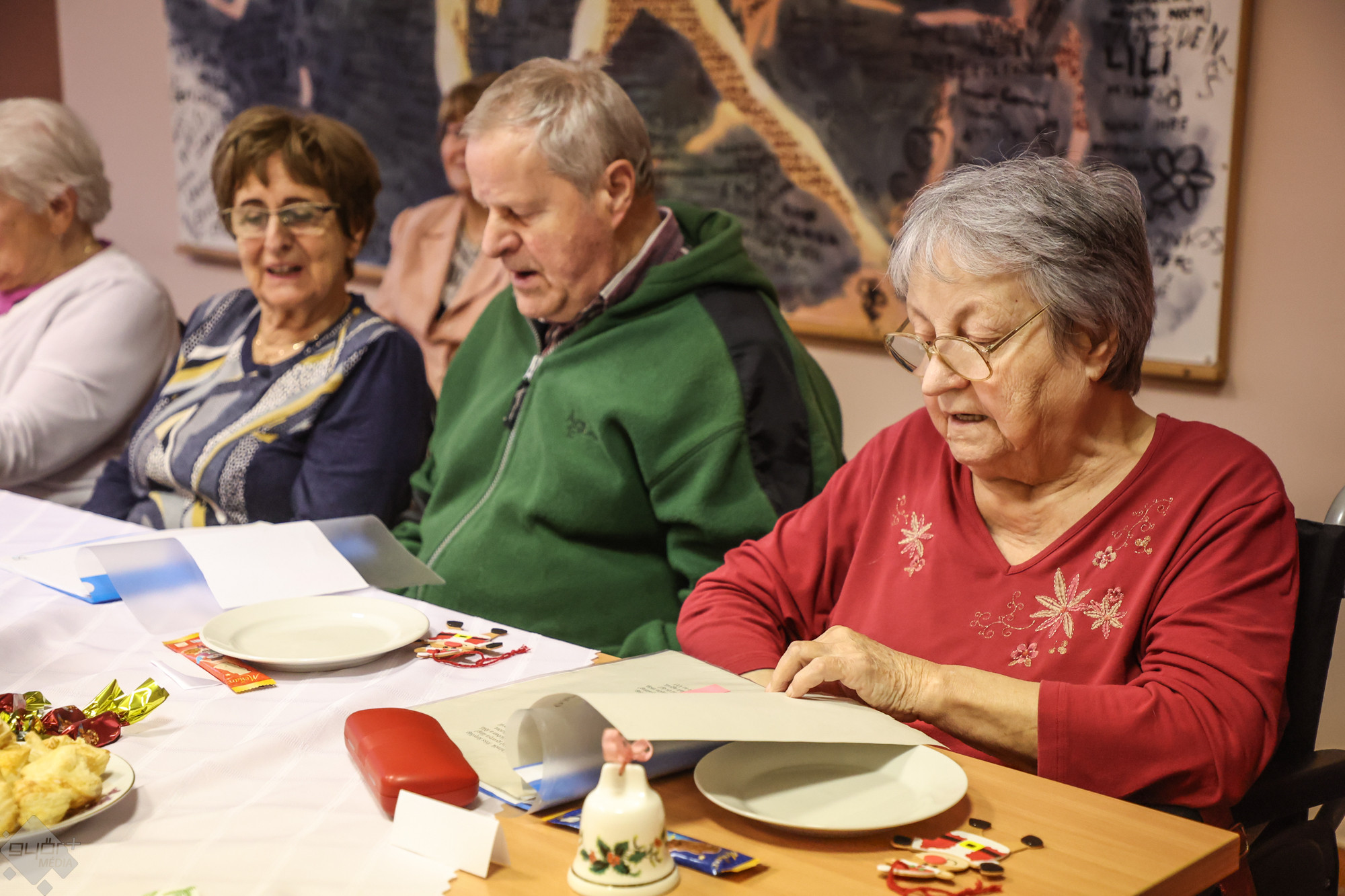 Ezután következett a harmadik adventi gyertya meggyújtása, majd karácsonyi énekek és versek hangzottak el a klub tagjainak előadásában. A kellemes hangulatú délután beszélgetéssel és falatozással zárult.