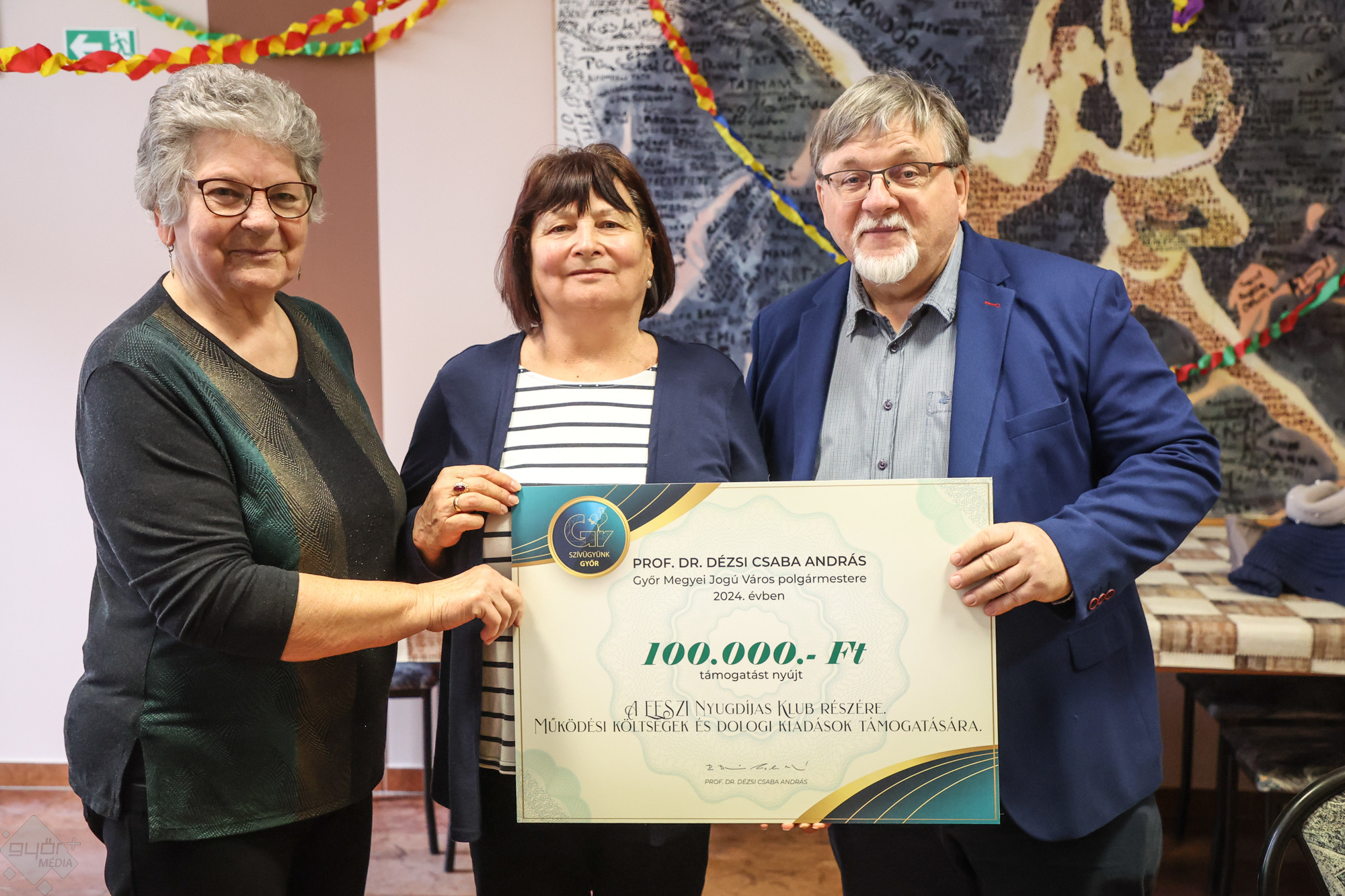 Dr. Dézsi Csaba András átnyújtotta a százezer forintos adományt jelképező táblát. Felhívta a figyelmet arra, milyen fórumokon követhetik nyomon a városban történt fejlesztéseket, eredményeket. Ezután átadta a szót a hallgatóságnak.