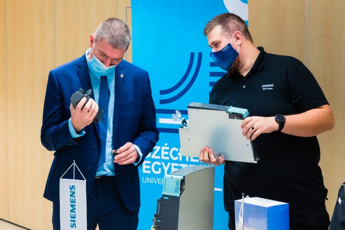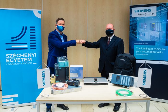 A kiváló partnerkapcsolat szimbólumaként nagy értékű adománycsomaggal támogatta a győri Széchenyi István Egyetem oktatási tevékenységét a Siemens Zrt. A felajánlásnak köszönhetően a legmodernebb, programozható logikai vezérlő (PLC) oktatócsomaggal, Field PG programozó készülékkel, illetve az egyetem laboratóriumában kutatás-fejlesztésre is használható hajtásrendszerrel és szervomotorral gazdagodott a győri universitas, ezáltal a hallgatók és az oktatók.