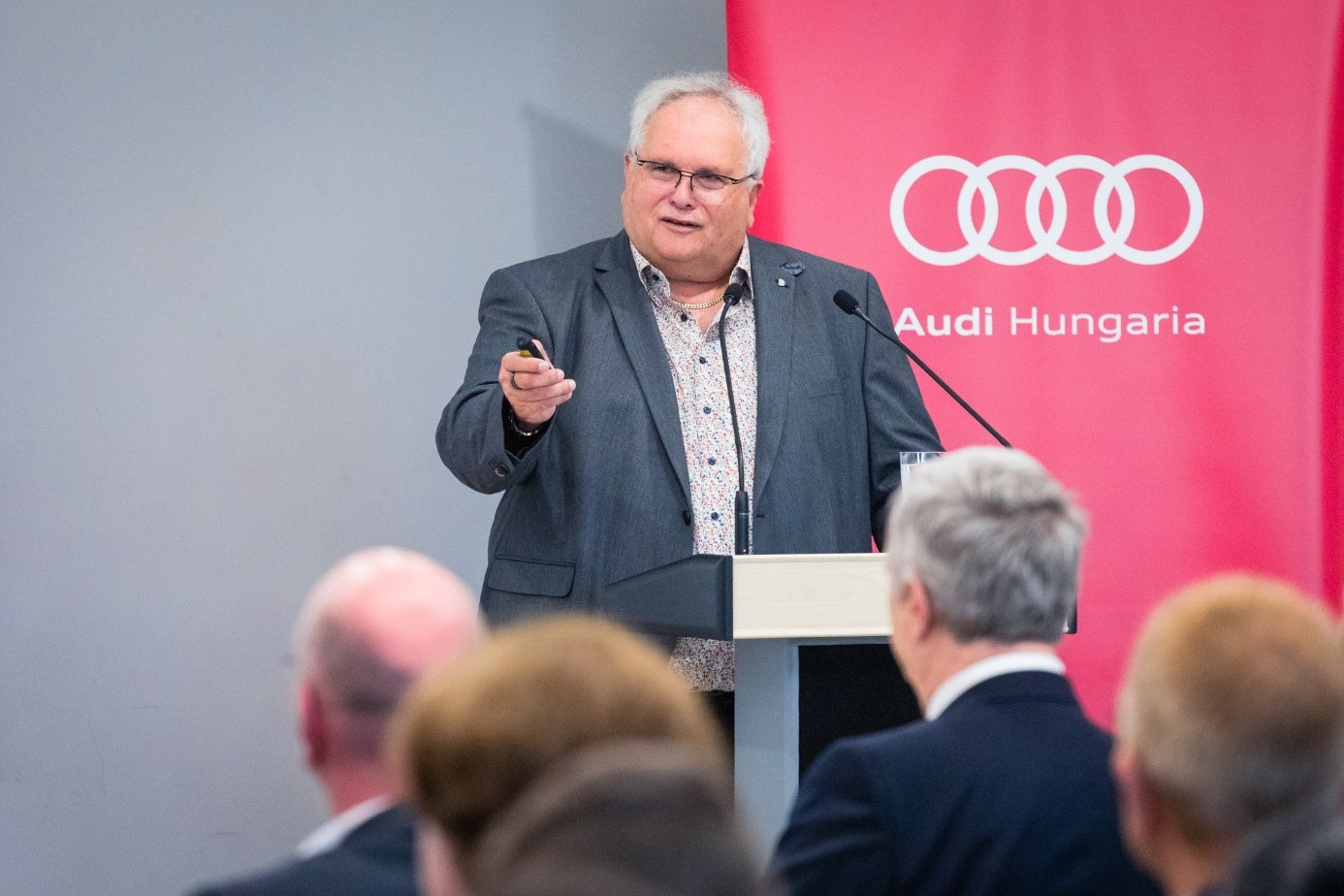„Az Audi Hungaria Magyarország legnagyobb termelővállalata, beruházója, és egymaga adja Magyarország exportjának nyolc-kilenc százalékát. Legalább ennyire fontos, hogy közvetlenül, valamint közvetetten, a szolgáltatókon és beszállítókon keresztül negyvenezer családnak biztosít megélhetést. Az Audi Hungaria emellett nemcsak a világ legnagyobb motorgyárát működteti, hanem az egyik legnagyobb járműipari fejlesztőnek is számít” – fogalmazott a rendezvény elején dr. Lukács Eszter, a Széchenyi István Egyetem nemzetközi stratégiai elnökhelyettese, aki a vállalat és az egyetem kapcsolatáról beszélt. Mint mondta, az intézményt három évtizede szoros partnerség fűzi az Audihoz.