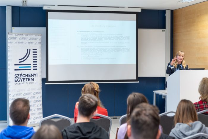 A Széchenyi István Egyetemen tartott előadást a 2024-es magyar EU-elnökségről, az arra való felkészülés aktualitásairól dr. Ballester-Bólya Boglárka, az Európai Uniós Ügyek Minisztériumának EU-elnökségi képzéséért, személyzetpolitikai feladatok összehangolásáért és társadalmi szervezetekkel való kapcsolattartásért felelős miniszteri biztosa.