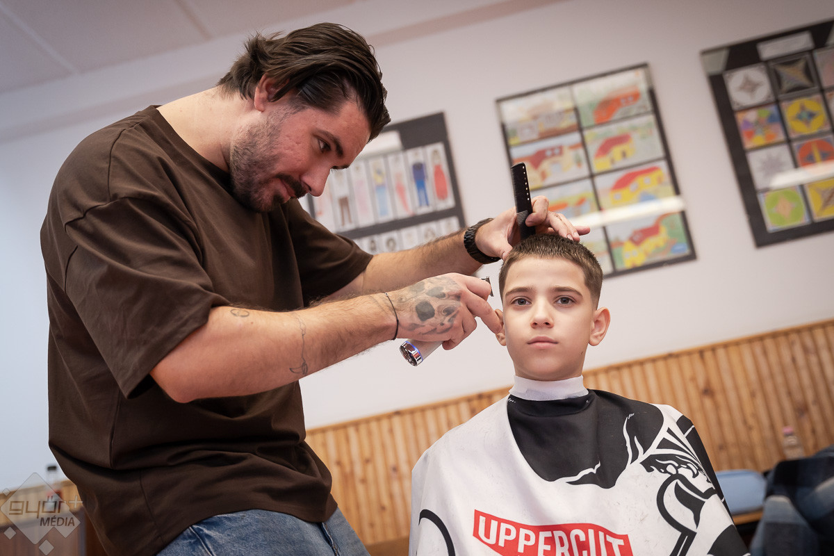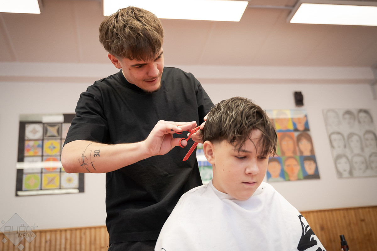 A székekbe ülő gyerekek között voltak rászorulók, szorgalmas tanulók és tehetséges sportolók is – mindannyian egyformán fontosak, egyformán megérdemelték a törődést. Az ollók finoman követték a haj ívét, a borotvák precízen dolgoztak, a fonatok lassan formát öltöttek. Minden mozdulatban ott volt az odafigyelés, minden érintésben a szeretet. Hajszálról hajszálra épült valami több, mint egy frizura: önbizalom, öröm, ünnepi várakozás.