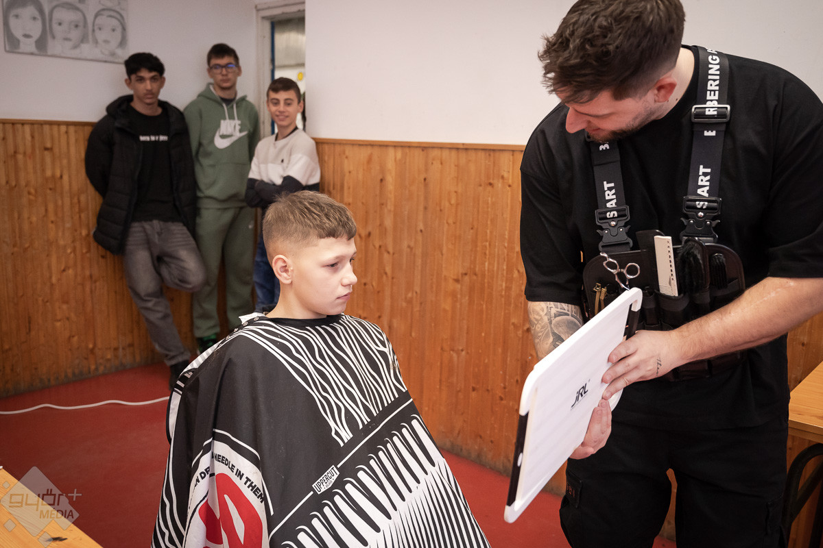 „Nagyon szeretünk segíteni a gyerekeknek, különösen most, a szeretet ünnepe előtt. Minden évben igyekszünk ott segíteni, ahol csak tudunk. Tavaly is részt vettünk jótékony akcióban, és idén is egyértelmű volt számunkra, hogy folytatjuk ezt a hagyományt, hogy egy kicsit szebbé tegyük azoknak a karácsonyát, akik ebbe az iskolába járnak. A gyerekek fantasztikusak: kedvesek, lazák, jó fejek, úgyhogy maximálisan elégedettek vagyunk velük” – osztotta meg gondolatait Nagy Dominik a Dom Da Barber Shop tulajdonosa, aki Bólya Olivérrel, Varga Csengerrel, Bubernik Bencével és Deákovits Richárddal készítették a srácok menő friuzáit.