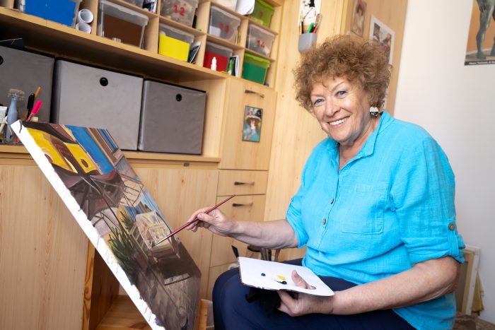 mindegyikhez ért, sőt, ha szükség van rá, szívesen fodrászkodik is. Ám a tökéletes kikapcsolódást a festés jelenti számára.