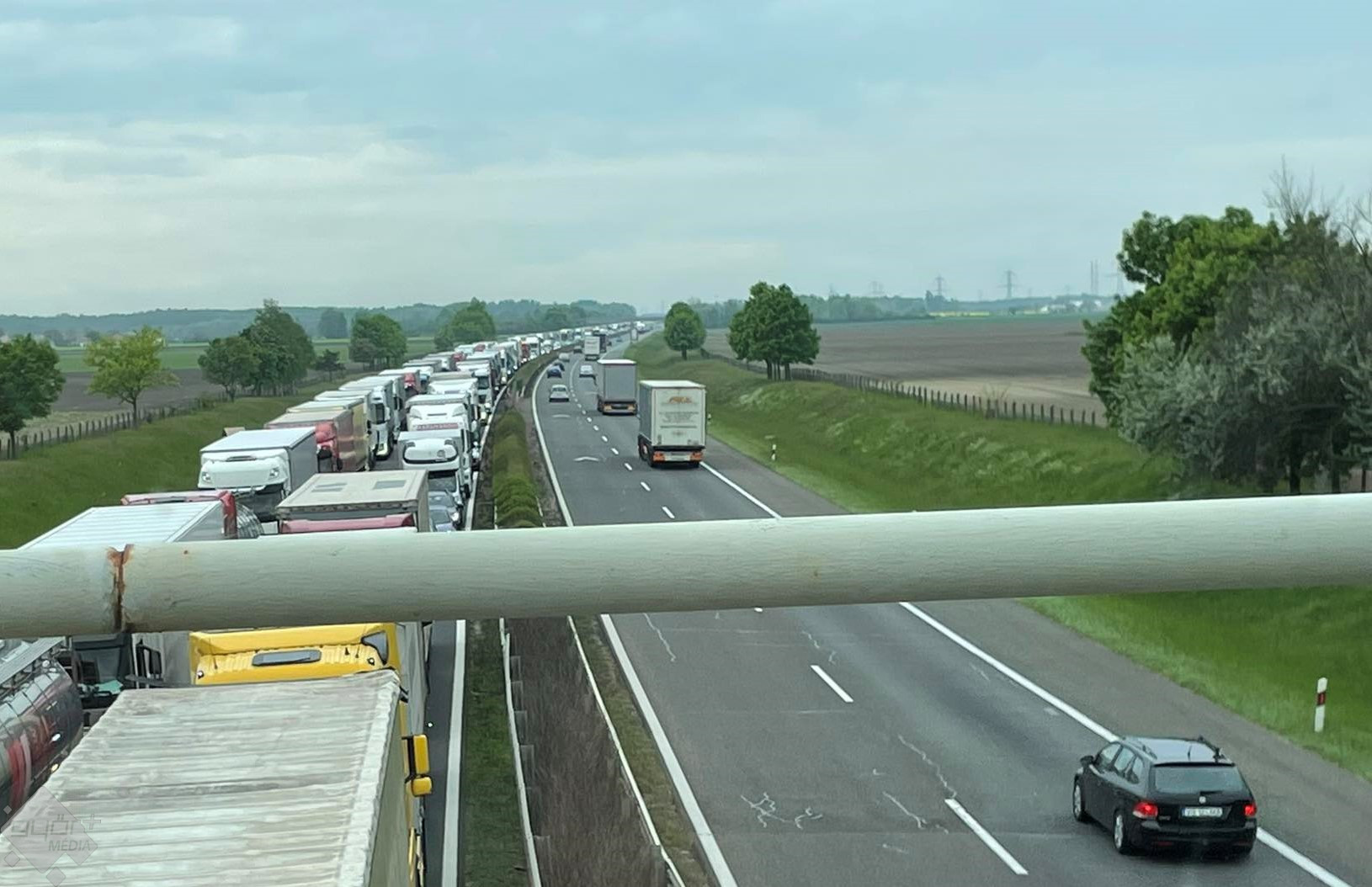 Fenntartási munkát végeznek az M1-es autópálya határ felé vezető oldalán, a Komárom / Kisbér csomópont előtt. A 81-es és 83-as km között a külső sávot lezárták, emiatt a munkaterület mögött torlódik a forgalom.