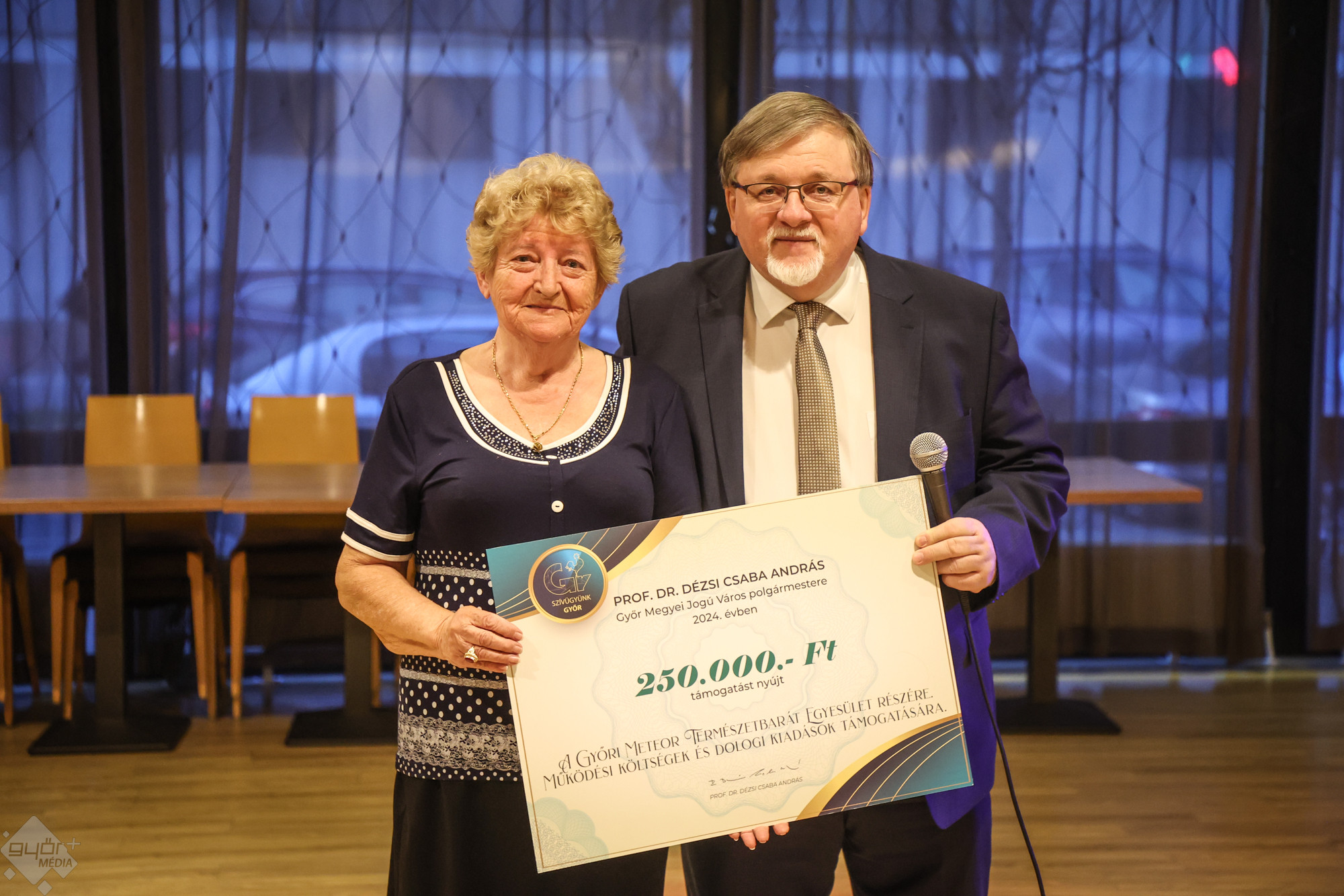 Újabb idősek alkotta közösségnél tett látogatást dr. Dézsi Csaba András. A város polgármestere a Győri Meteor Természetbarát Egyesület Zöldfa Étteremben tartott összejövetelén nyújtotta át a város 250 ezer forintos támogatását.