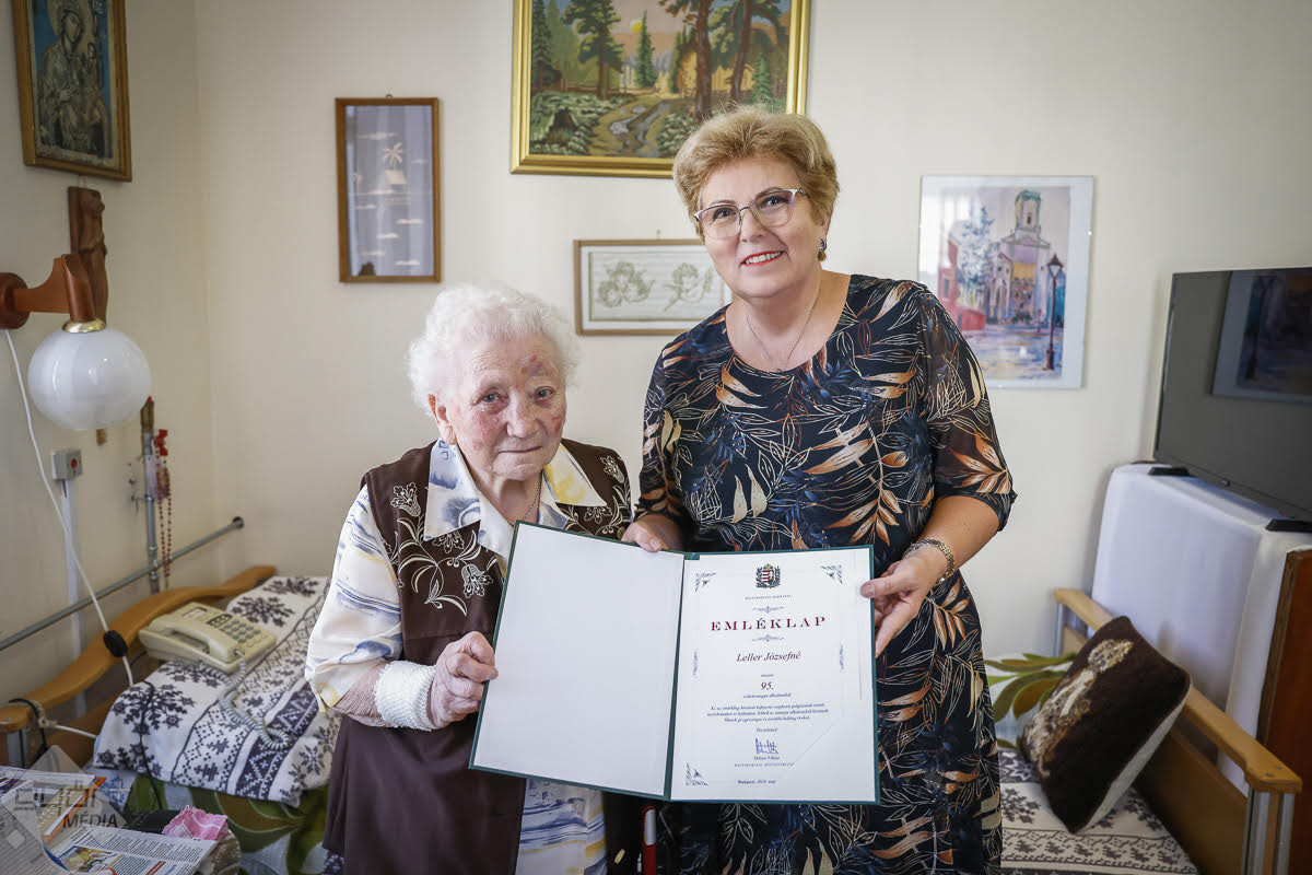 Leller Józsefnét ünnepelték ma délután a Szent Angéla Otthonban. A 95 éves Rózsikát a város vezetése nevében dr. Pergel Elza köszöntötte. Az alpolgármester Orbán Viktor miniszterelnök oklevelét, valamint virágot és ajándékot nyújtott át az ünnepeltnek.