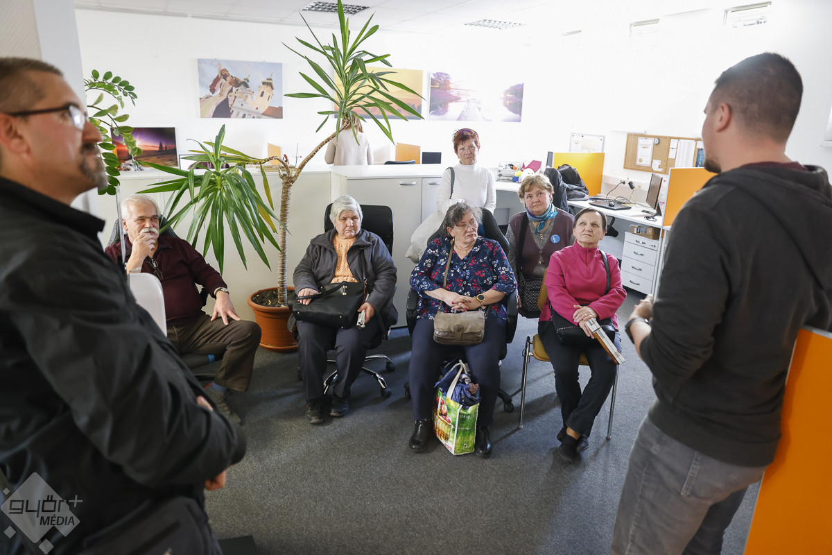 Elsőként a Győr+ Televízió stúdióját és vezérlőjét mutattuk meg számukra. Számos kérdéssel fordultak hozzánk, aki pedig egyáltalán nem lát, megtapogatta a súgógépet, a kamerát és a mikrofont is. Ezt követően a Győr+ Rádió felé vették az irányt, ahol Bajzát Zsuzsi, műsorvezető kolléganőnk mesélt a rádió működéséről, a műsorokról és a zenékről. Végül felmentek az emeletre is, ahol Mireider Máté, főszerkesztő kollégánk a Győr+ Online és a Győr+ Hetilap működéséről beszélt a különleges vendégeknek, akik nagyon élvezték a túrát.