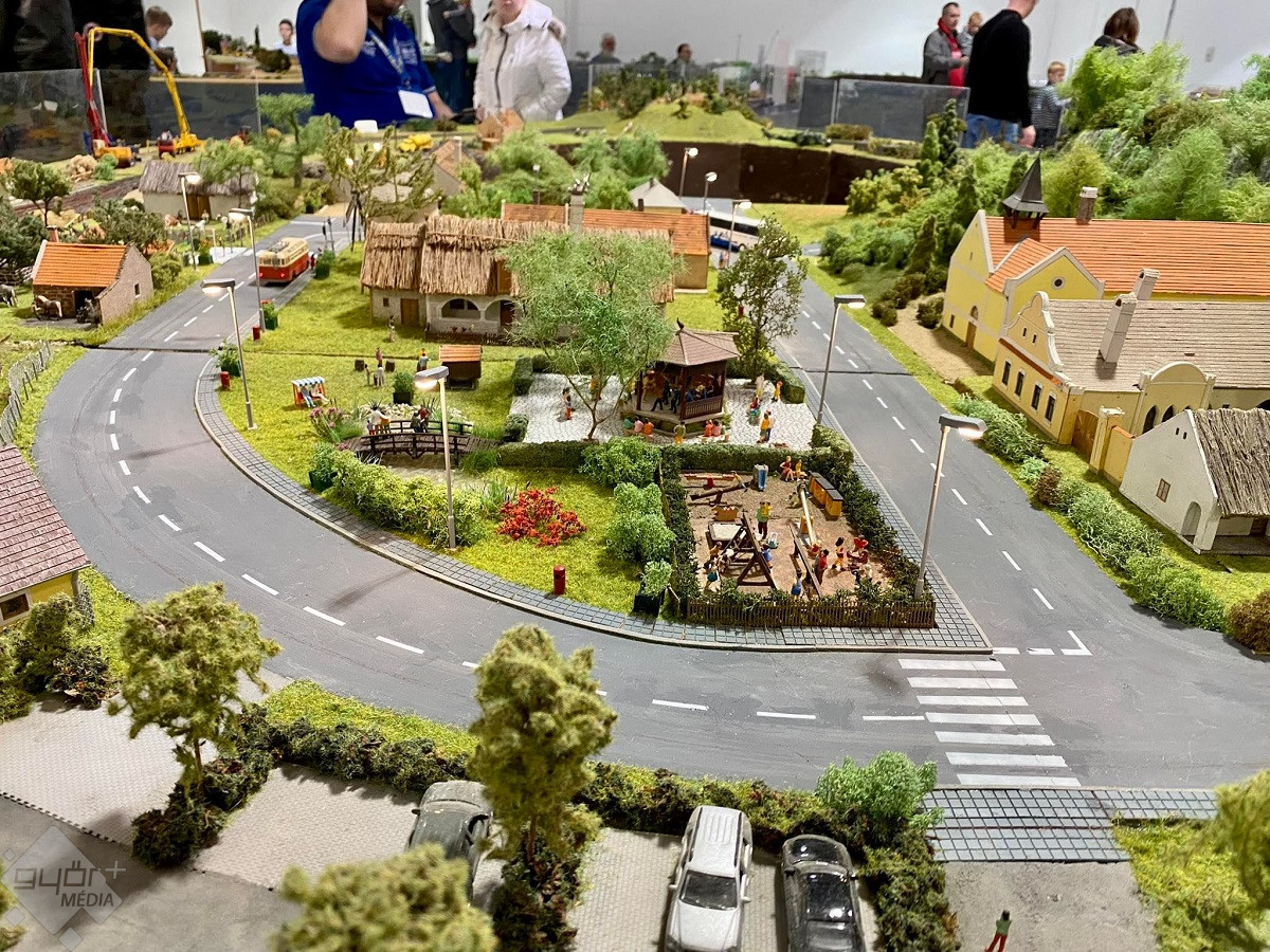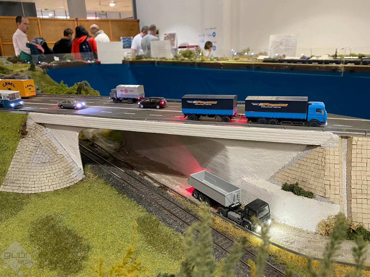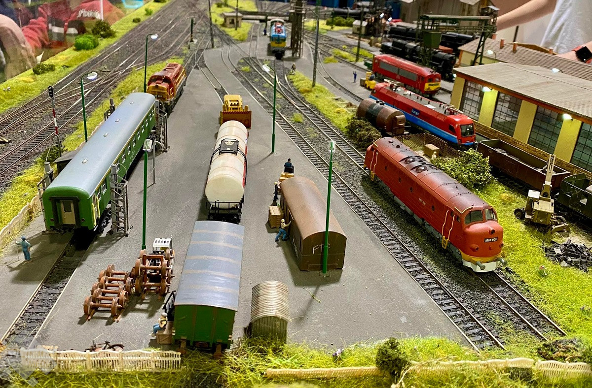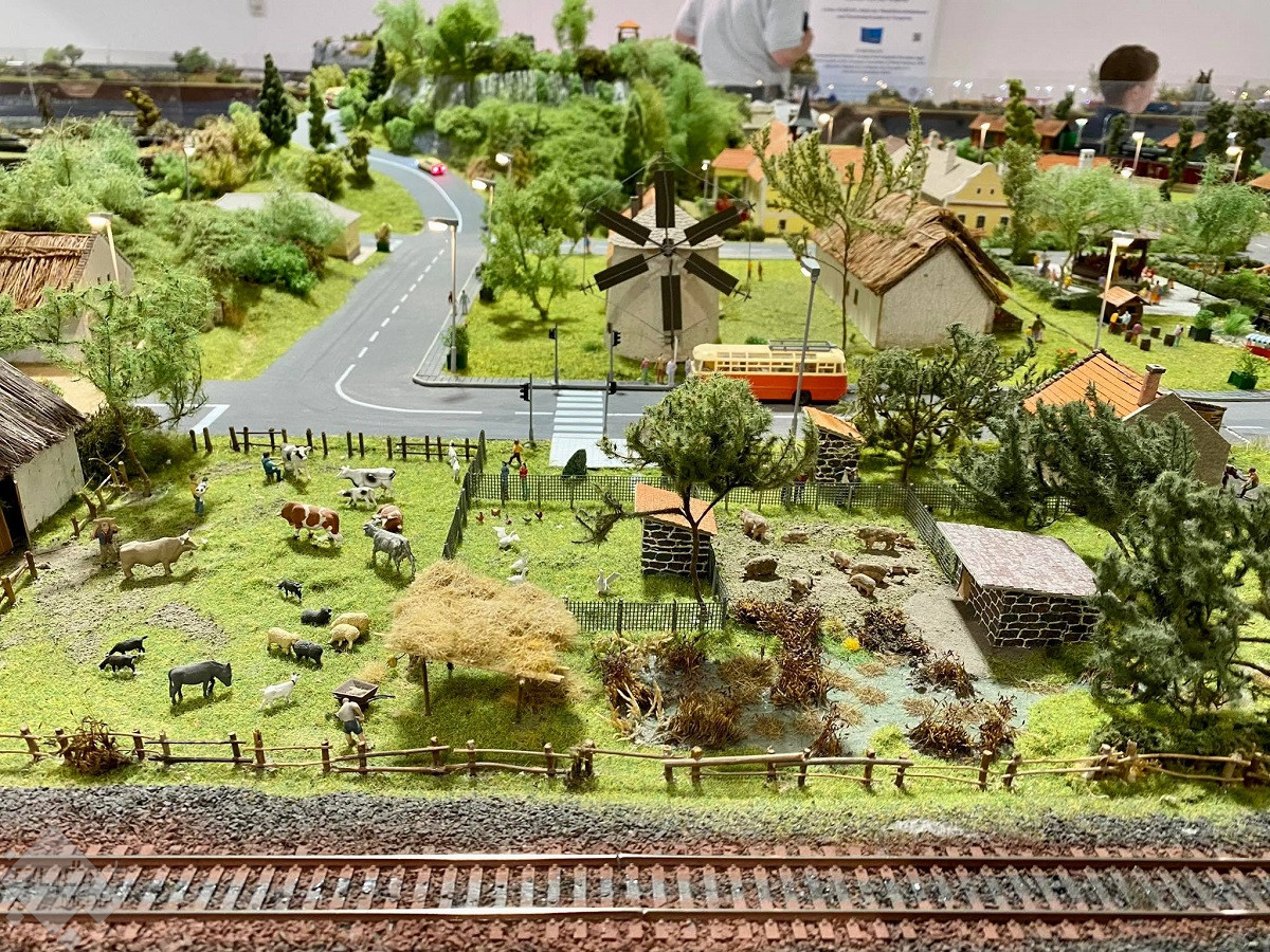 Az izgalmas kiállításon 100 méteres terepasztalon tekinthetjük meg a veszprémi és a győri klubok munkáját. A vasúti pálya mellett élethű fák, bokrok, gazdaságok, benzinkutak, építkezések és alagutak láthatók. Az apró részletekre ügyelve működnek a jelzők, kapirgálnak a tyúkok, csobog a szökőkút, valakit épp újraélesztenek a mentők és világítanak az autók lámpái is.