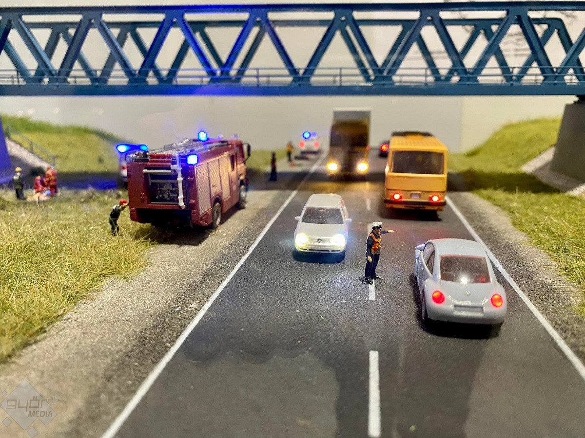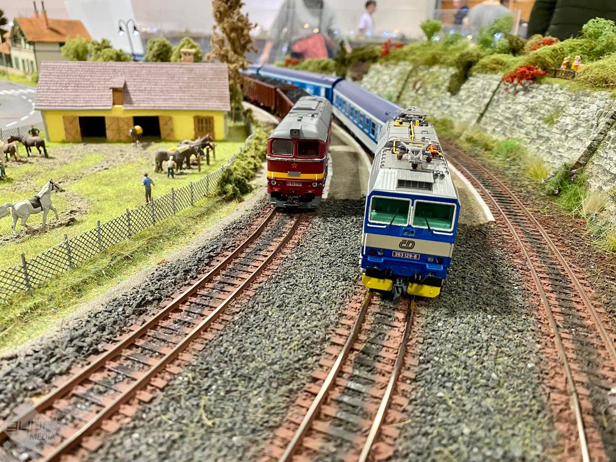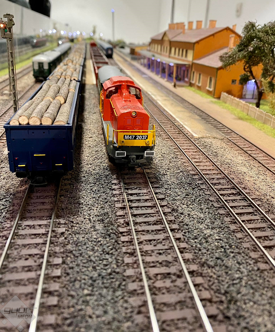 Az izgalmas kiállításon 100 méteres terepasztalon tekinthetjük meg a veszprémi és a győri klubok munkáját. A vasúti pálya mellett élethű fák, bokrok, gazdaságok, benzinkutak, építkezések és alagutak láthatók. Az apró részletekre ügyelve működnek a jelzők, kapirgálnak a tyúkok, csobog a szökőkút, valakit épp újraélesztenek a mentők és világítanak az autók lámpái is.
