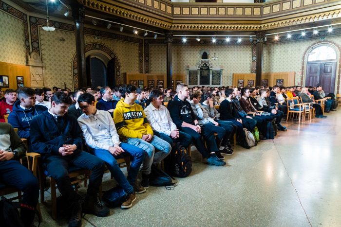 A Pattantyús-Ábrahám Géza Ipari Szakgimnázium és Szakközépiskola kilencedik és tizedik osztályos diákjai töltötték meg az Egyetemi Hangversenytermet nemrégiben, aznap rendezték ugyanis az intézmény napját, amelynek során különböző programokat szervezték a tanulóknak. E két évfolyam – ahogy Winkler Csaba sajtótitkár ismertette – régi hagyomány szerint a Széchenyi István Egyetem villamosmérnöki képzéséről szerezhetett ismereteket. Dr. Dóka Ottó rektorhelyettes köszöntőjében fontosnak nevezte az iskolával való kapcsolatot, mert az ilyen profilú alma materek jelentik számukra a képzés előszobáit, a műszaki területek ugyanis vezető szerepet játszanak az egyetemen. Villányi Tibor, a győri zsidó hitközség elnöke a helyszínről, az egykori zsinagógáról beszélt, így annak 1876-os átadásáról; a holokausztról, amelynek során a város zsidóságának nagy részét, köztük sok gyereket elpusztítottak; valamint arról, hogy az épület miként lett a Széchenyi-egyetemhez kerülve a kultúra szentélye.