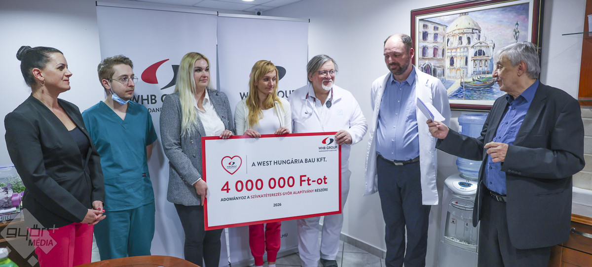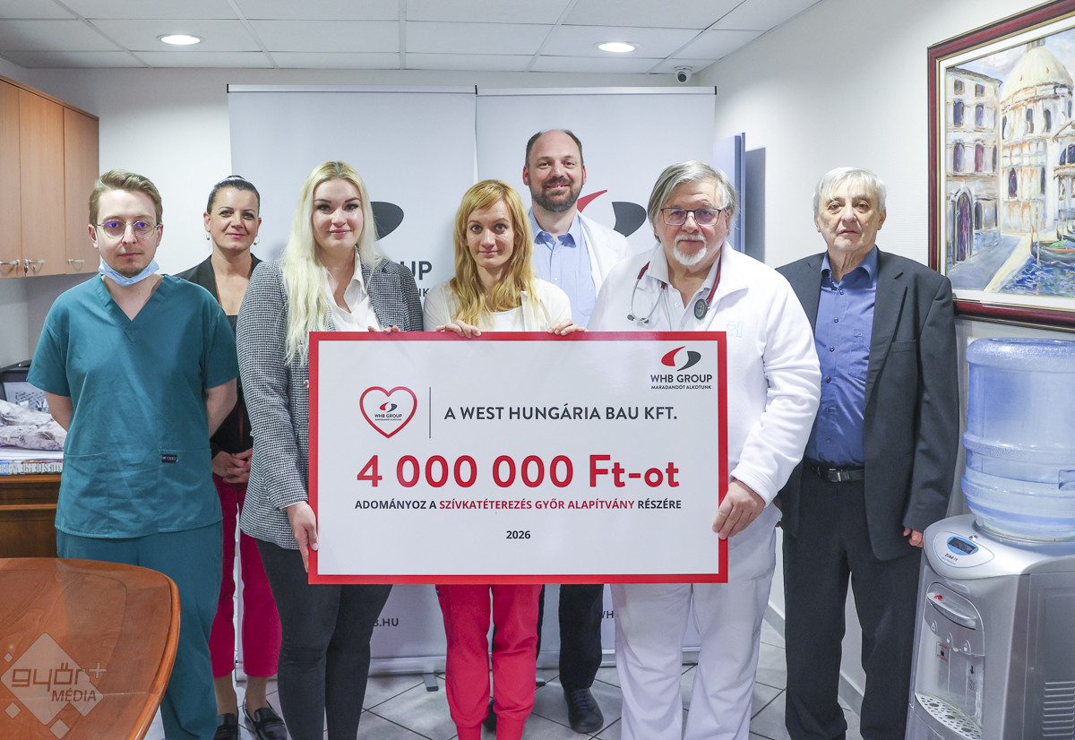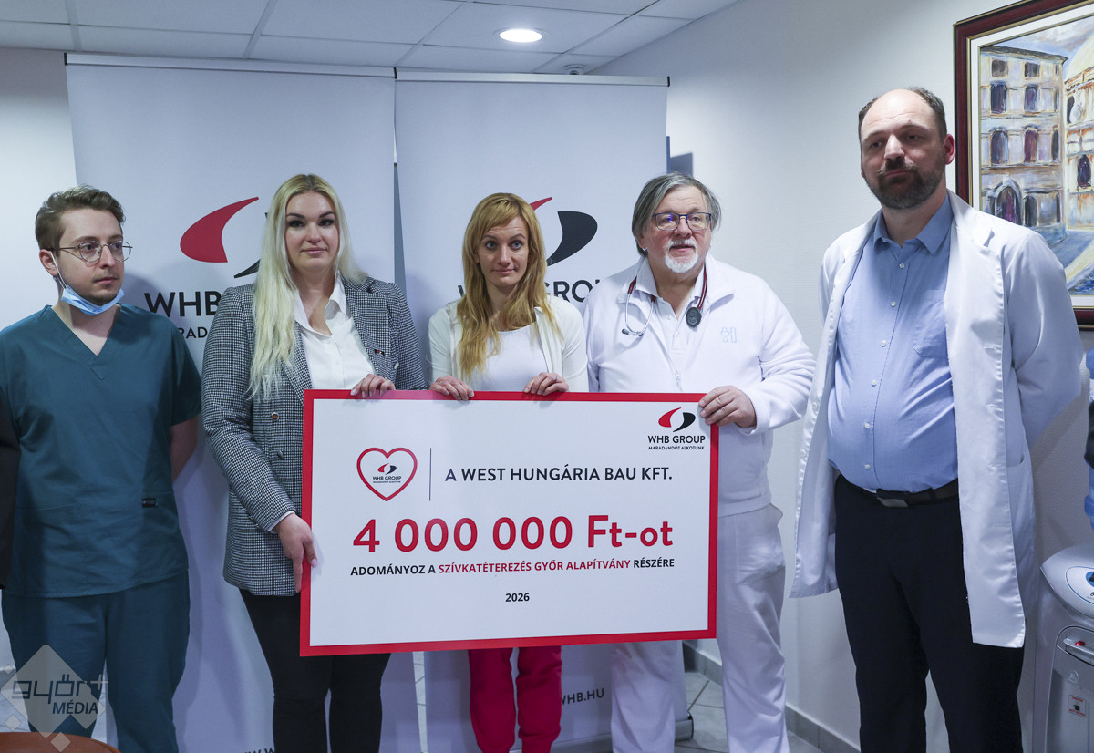 Ismét jelentős támogatást nyújtott a West Hungaria Bau (WHB) a Szívkatéterezés Győr Alapítvány működéséhez. Paár Attila építőipari vállalata az idén is négy millió forinttal járul hozzá a szívbetegek gyógyításához.