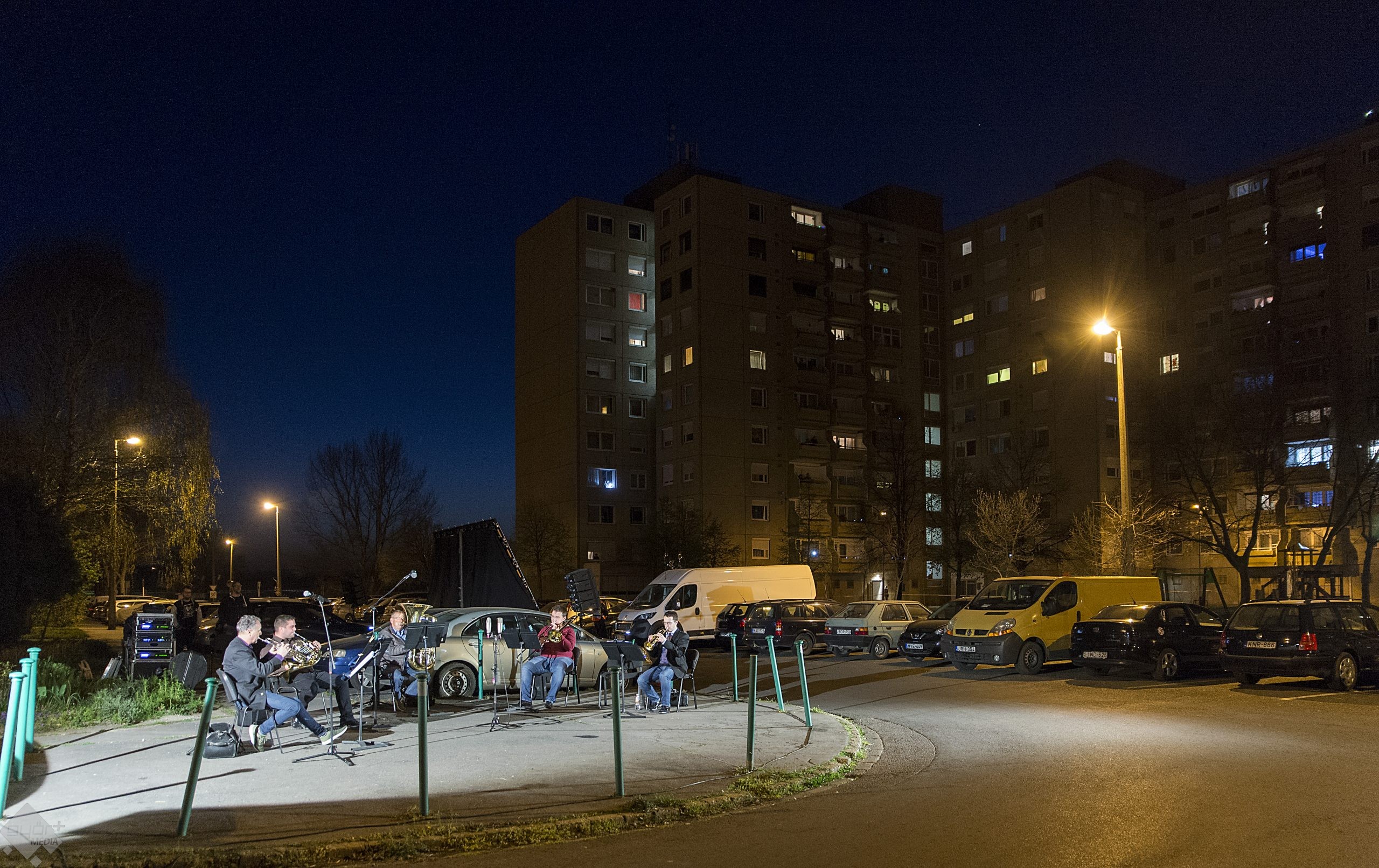 Az esti koncertet a városrész lakói fegyelmezetten, az ablakokból, erkélyekről hallgatták, sőt a zenekarnak hála, nagy méretű ledfalakon keresztül is követhették a koncertet.