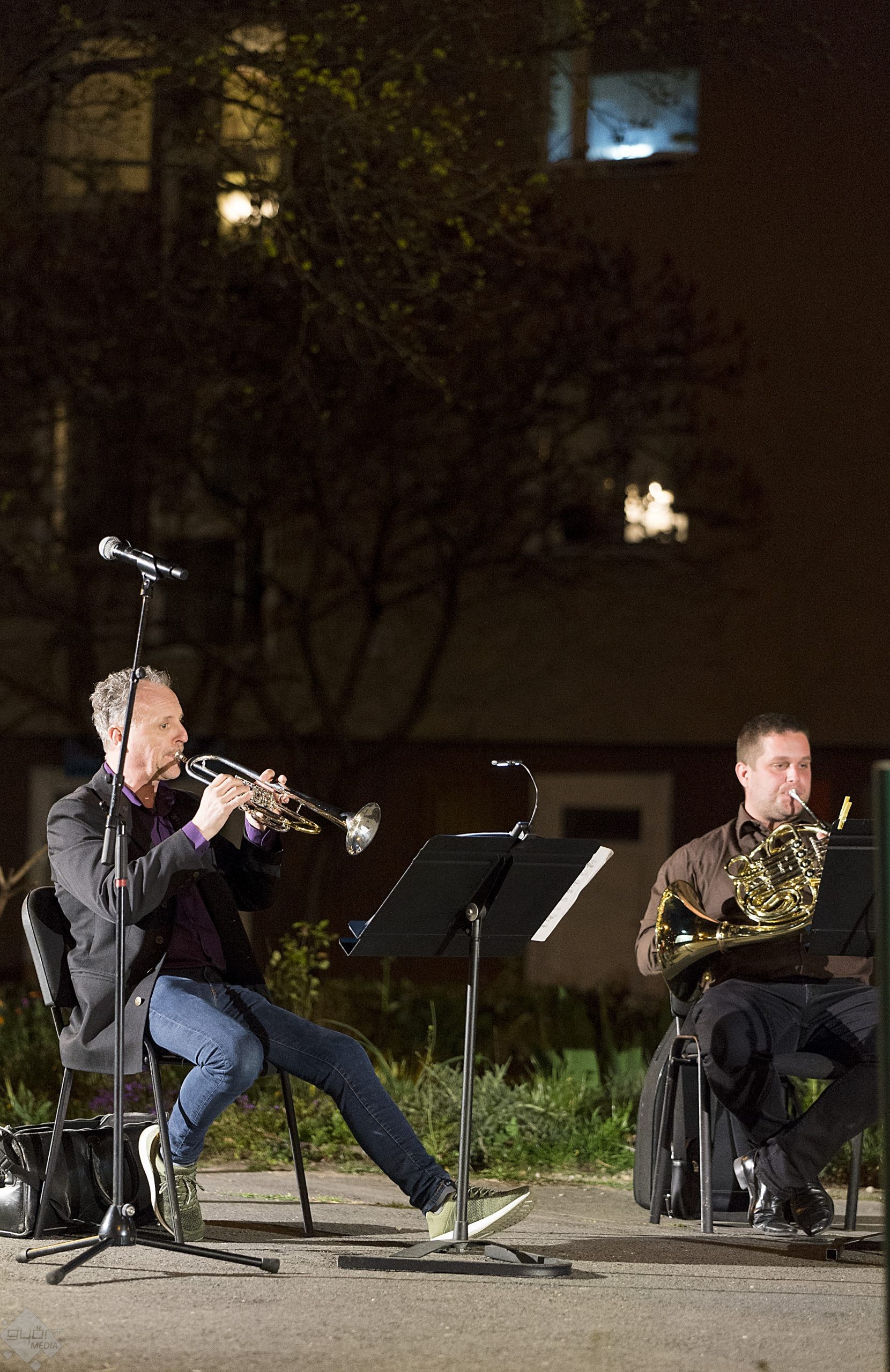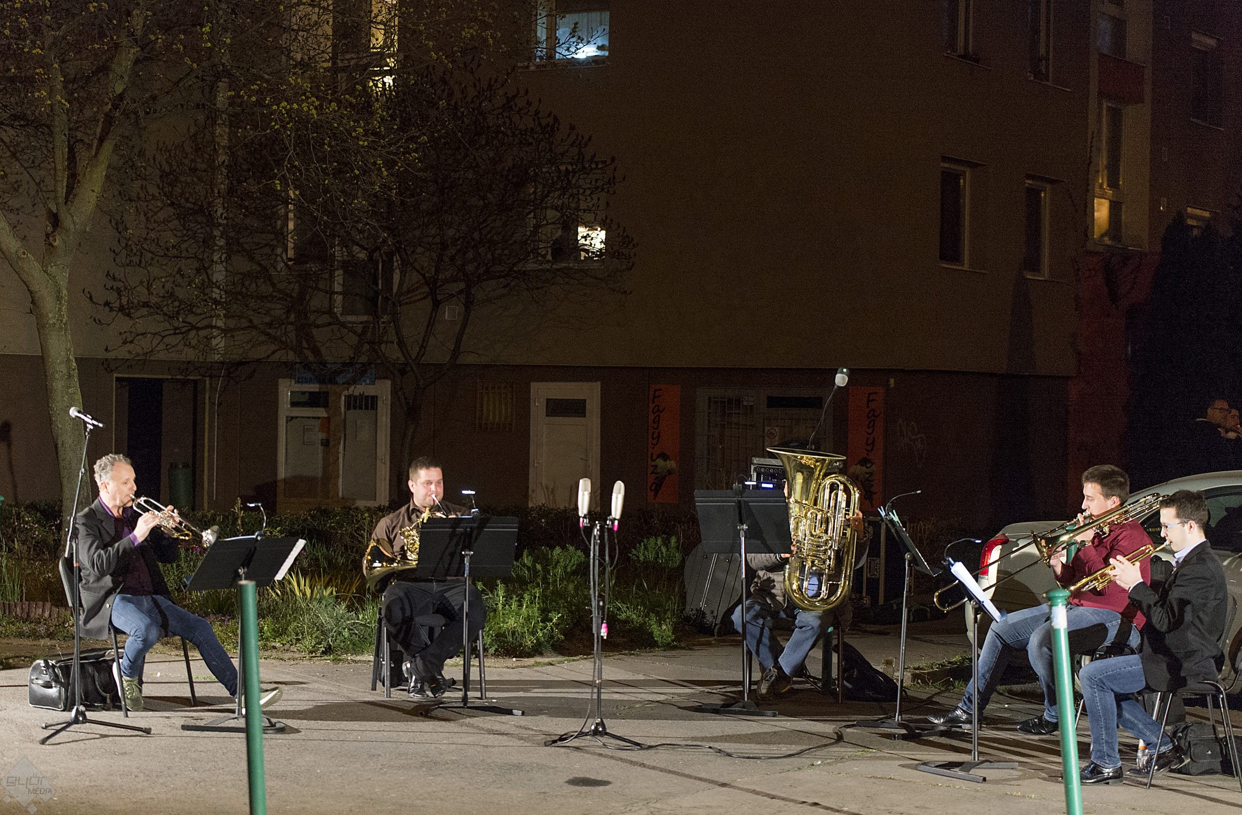 A társulat Arrabona Rézfúvós Kvintettje (Németh Tamás – trombita, Vörös Ádám – trombita, Bolykó István – kürt, Tóth József – harsona, Hauszknecht Csaba – tuba) április 8-án, szerdán 17 órakor a Kálóczy téri idősotthon udvarán mutatkozott be.