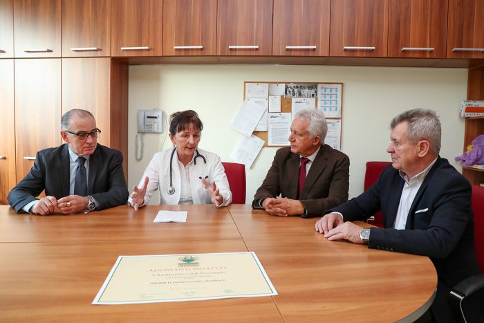 “Fontos ügyeket támogat, a kórház több alapítványát, osztályát is segíti a Kantharosz Civil Összefogás.” – mondta el az adományozó oklevelet a kardiológiai osztályon átadó két alapító, Tagai István és Riegler Antal, valamint Mikóczí Tamás, a szervezet kuratóriumának elnöke.