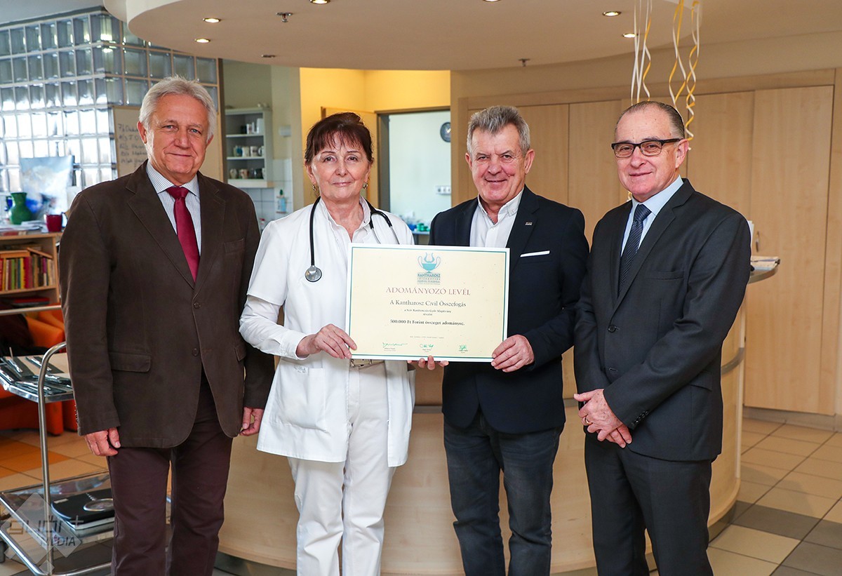 “Fontos ügyeket támogat, a kórház több alapítványát, osztályát is segíti a Kantharosz Civil Összefogás.” – mondta el az adományozó oklevelet a kardiológiai osztályon átadó két alapító, Tagai István és Riegler Antal, valamint Mikóczí Tamás, a szervezet kuratóriumának elnöke.